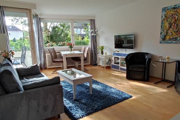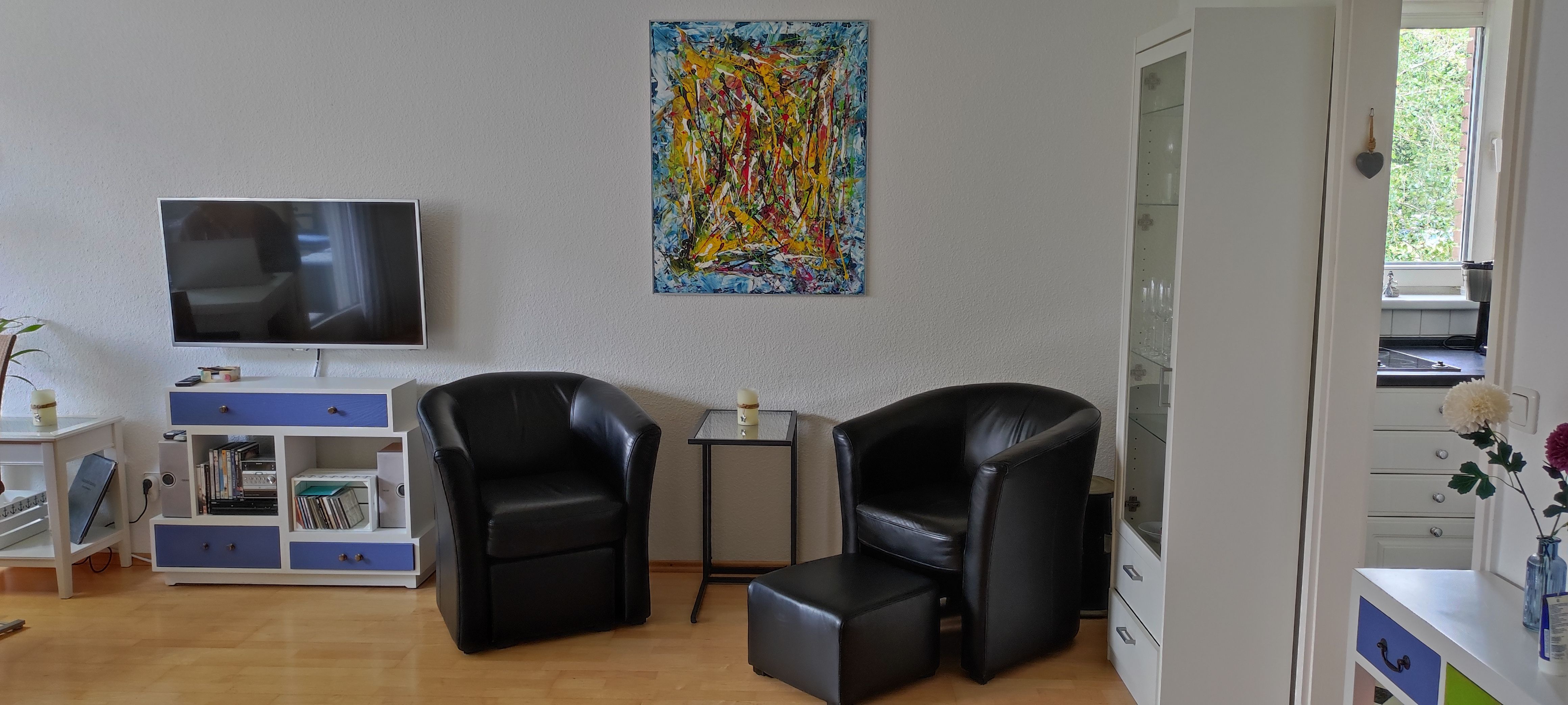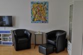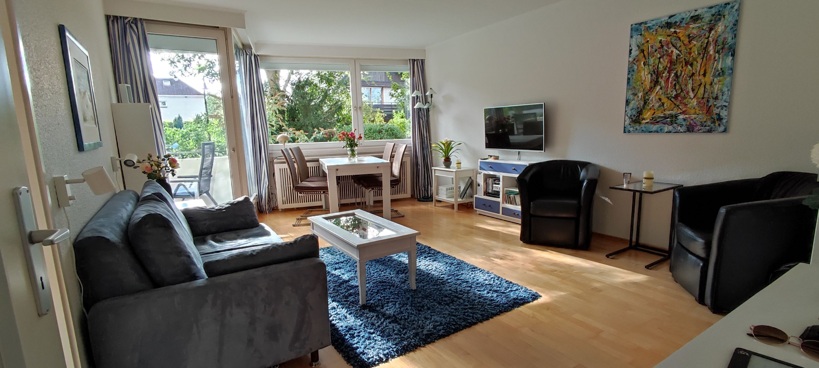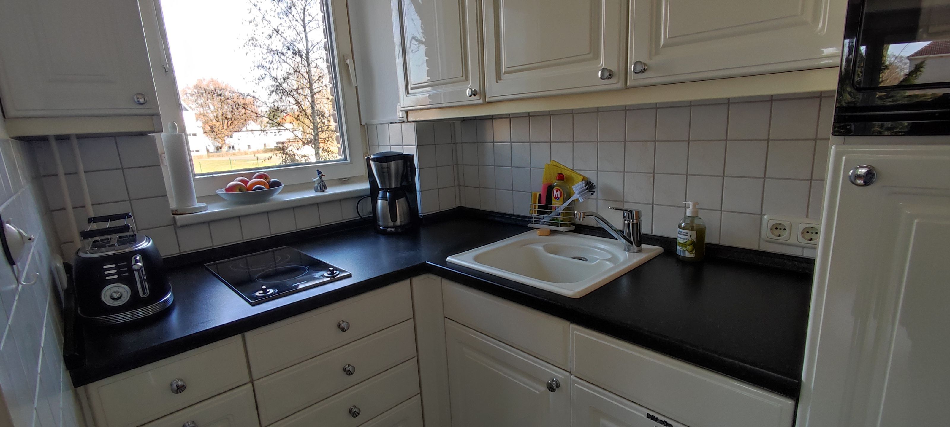Unsere lichtdurchflutete 2 Zi-Wohnung liegt im EG und ist ohne Stufen zu erreichen. Der Wohnraum ist mit einem gemütlichen Schlafsofa, einem hellen Essbereich und einer Leseecke ausgestattet. Auf dem Balkon mit West-Ausrichtung, kann man bis zum Abend die Sonne genießen. Das Schlafzimmer mit einem Doppelbett 2 x 80 x 200cm und einem kleinen Schreibtisch bietet die Möglichkeit sich zurückzuziehen. In der Küche findet sich alles was für die Zubereitung einfacher Speisen benötigt wird.