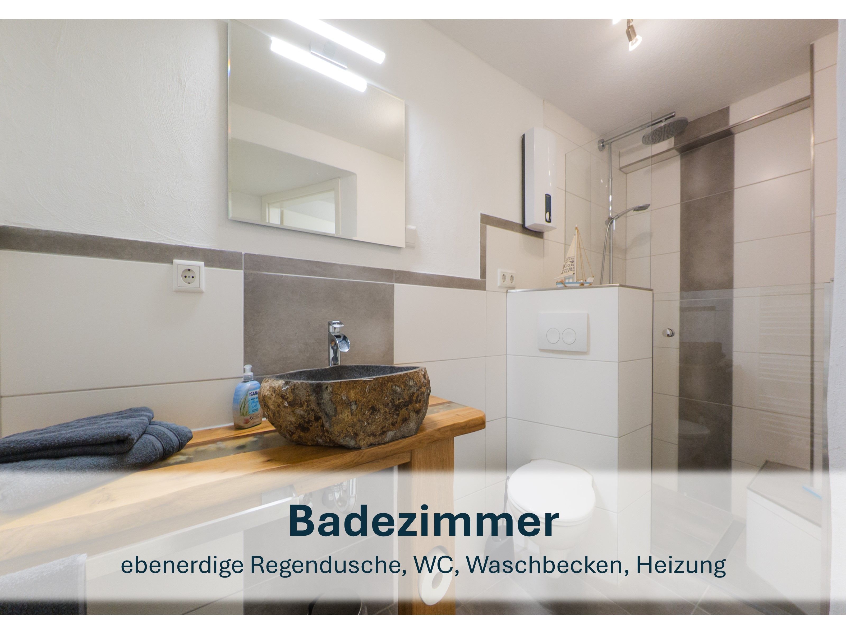 Das freundlich eingerichtete Badezimmer sorgt mit einer Regendusche und einem WC für zusätzlichen Komfort, damit Sie sich rundum wohlfühlen können. Diese Ferienwohnung bietet Ihnen alles für einen entspannten und unbeschwerten Aufenthalt! Die Bettwäsche ist im Preis bereits enthalten. Handtücher sind jedoch mitzubringen.