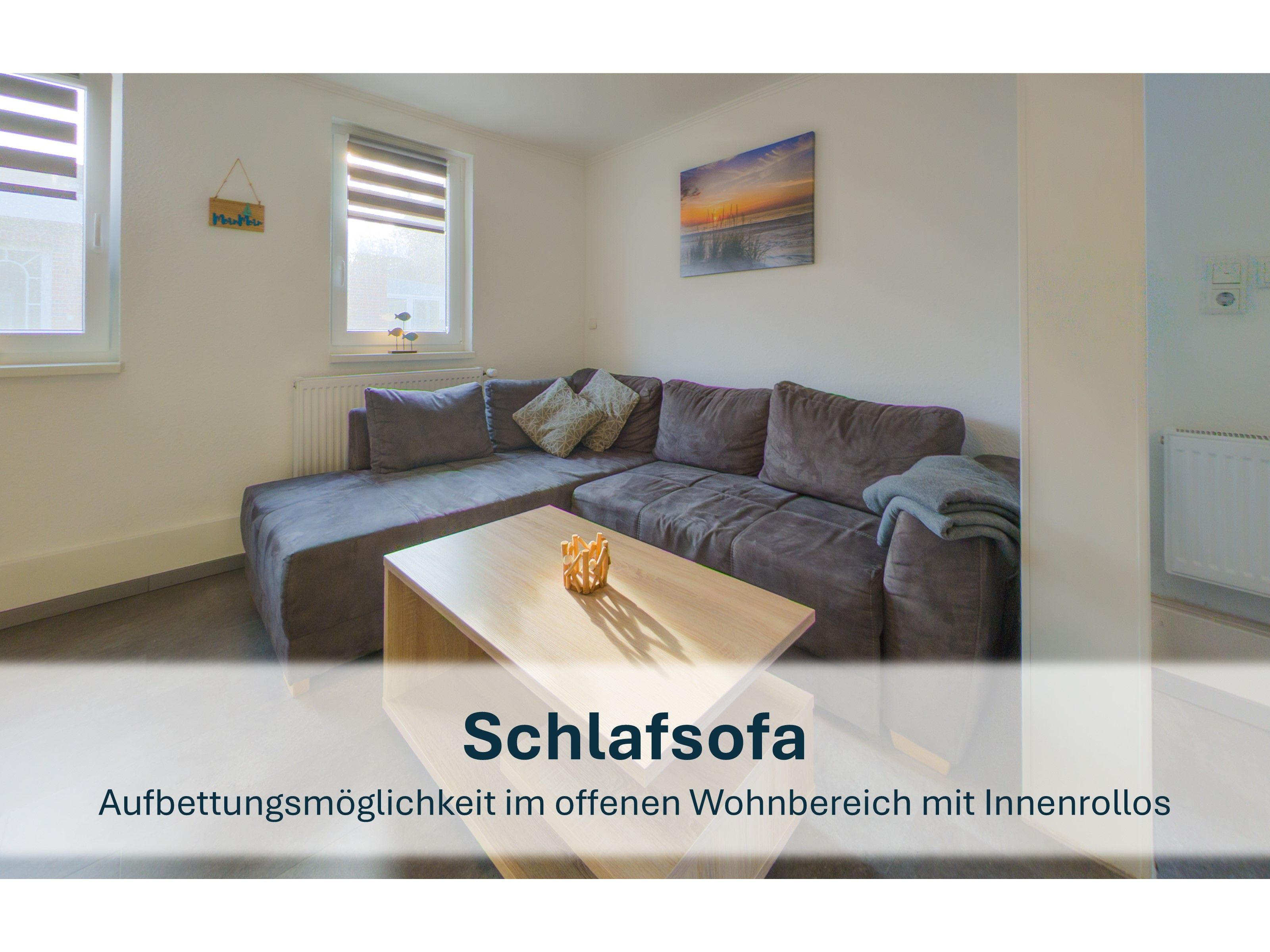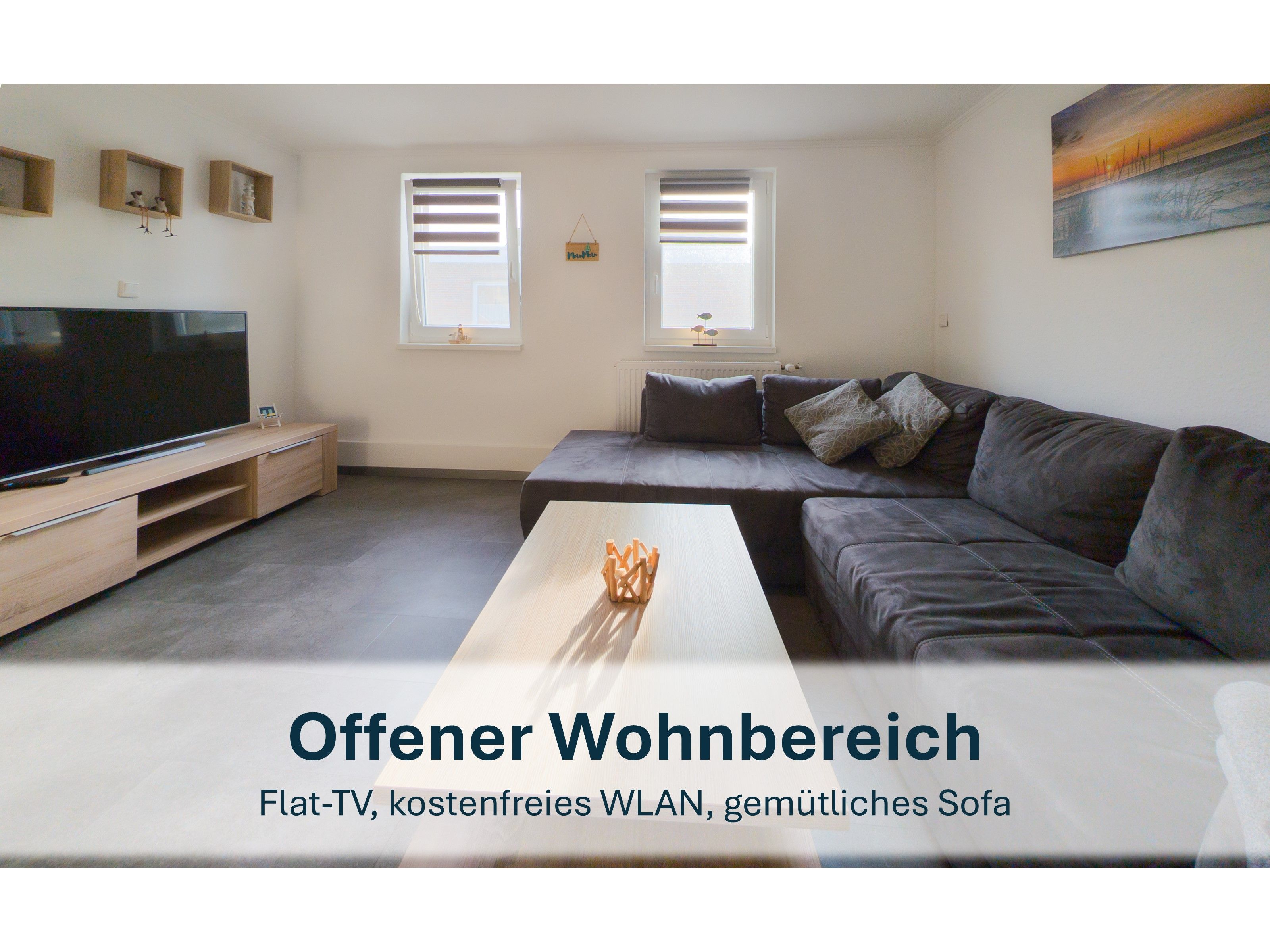 Diese 60m² große Unterkunft ist der perfekte Ort für Ihren erholsamen Urlaub! Der offene Wohn-/Essbereich strahlt Gemütlichkeit aus und bietet Ihnen alles, was Sie für eine unvergessliche Zeit benötigen. Die voll ausgestattete, offene Küche lässt keine Wünsche offen - vom Geschirrspüler über den Ofen bis hin zum Esstisch, an dem bequem 4 Personen Platz finden, ist hier alles dabei, um kulinarische Köstlichkeiten zu zaubern. Der Wohnbereich mit einer bequemen Eckcouch und Satellitenfernsehen lädt dazu ein, nach einem aufregenden Tag zu entspannen und den Abend zu genießen.