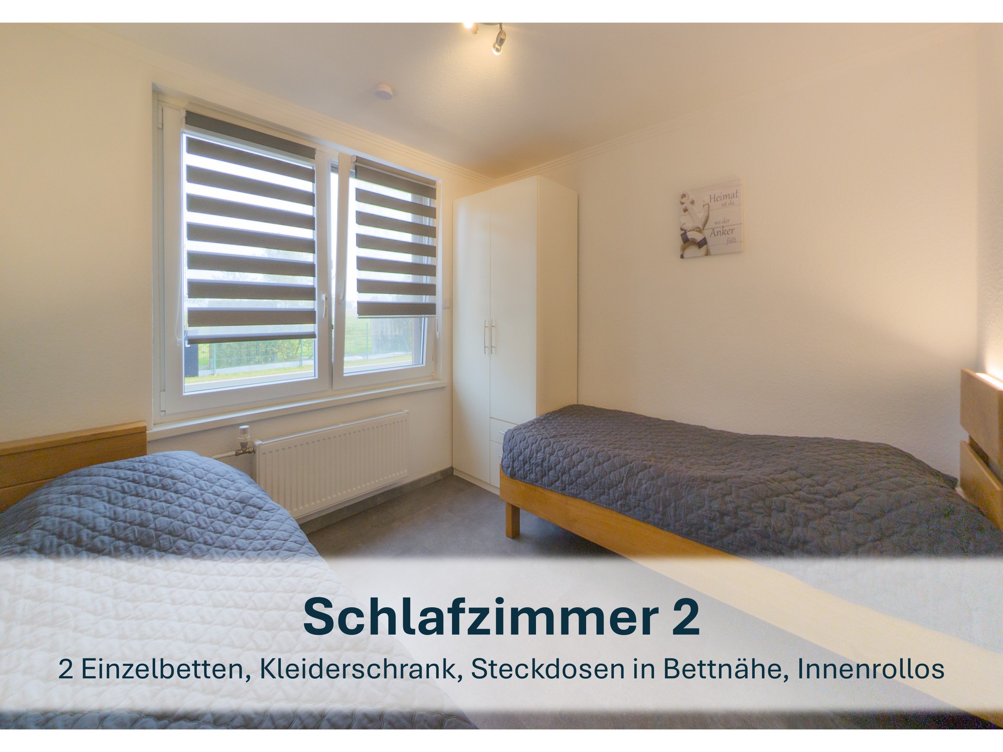 Im ersten Schlafzimmer erwartet Sie ein komfortables Queen-Size-Bett, während das zweite Schlafzimmer mit zwei gemütlichen Einzelbetten ausgestattet ist - ideal für die ganze Familie.