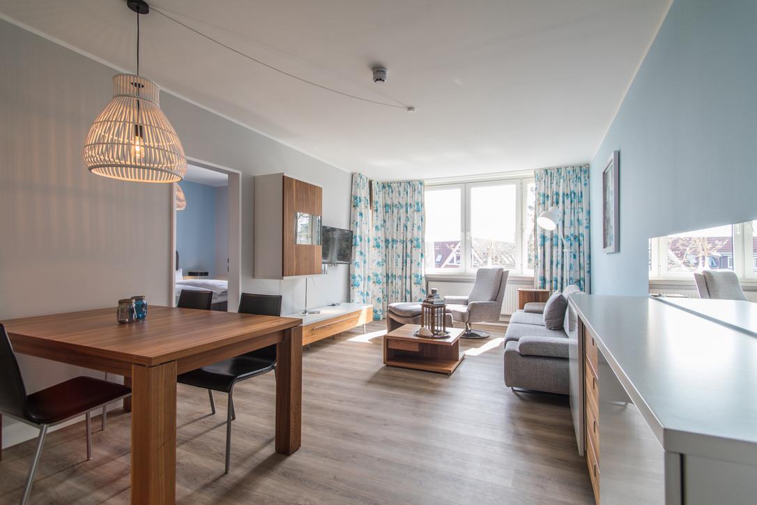 Suite Typ 2, 45 qm Wohnlichkeit strahlt diese 45 qm, großzügig eingerichtete Suite für max. 2 Erwachsene aus. Gradlinige Formen und Details sorgen für ein behagliches Ambiente. Ankommen und sofort in die Urlaubszeit einsteigen….