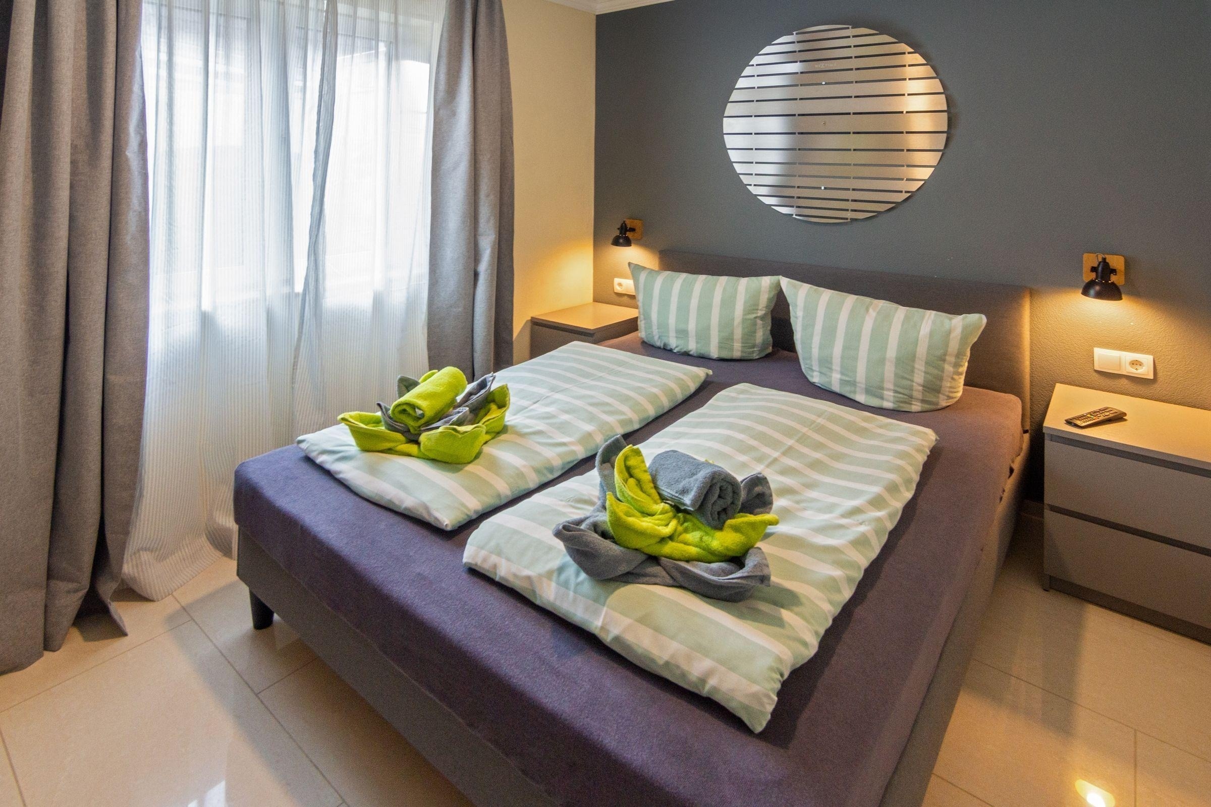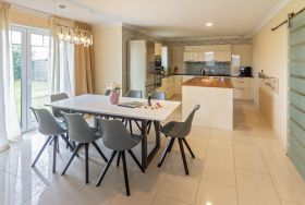 Diese moderne Ferienwohnung bietet großzügige 4 Schlafzimmer, ausgestattet mit 3 Doppelbetten und 2 Einzelbetten, ideal für Familien oder Gruppen. Die offene Küche ist mit einem Geschirrspüler, Elektro- und Gasherd, Backofen, Mikrowelle und Kühlschrank komplett ausgestattet und lässt keine Wünsche offen. Ein gemütlicher Esstisch eignet sich perfekt für gemeinsame Mahlzeiten. Die beiden hellen Badezimmer verfügen über eine Badewanne, Duschbad und Fußbodenheizung, während der Haartrockner und das Bidet zusätzlichen Komfort bieten. Ein Kamin sorgt für wohlige Wärme an kühlen Abenden. Die Wohnung ist allergikergeeignet und bietet WLAN, TV und eine HiFi-Anlage für Unterhaltung. Für zusätzliche Annehmlichkeiten stehen eine Waschmaschine, ein Bügeleisen und ein Staubsauger zur Verfügung. Ein Parkplatz und Fliegengitter sind ebenso vorhanden. Kinder können sich mit Brettspielen vergnügen oder draußen unter dem Sonnenschirm spielen. Ein idealer Rückzugsort für entspannte Urlaubstage.