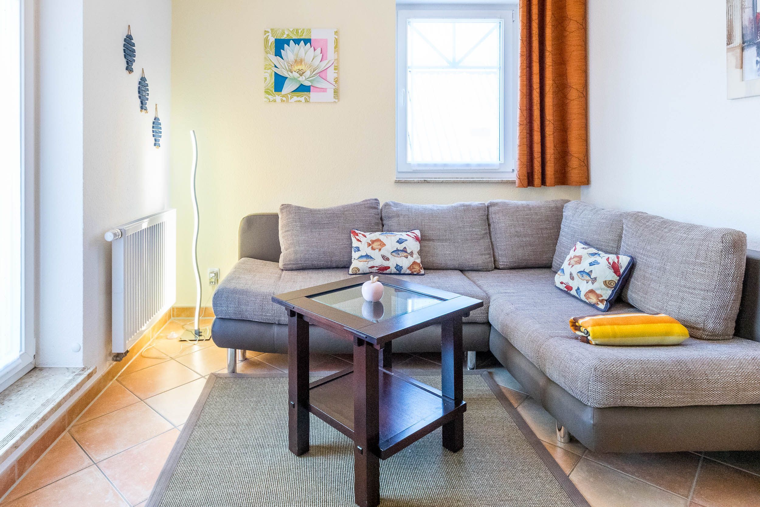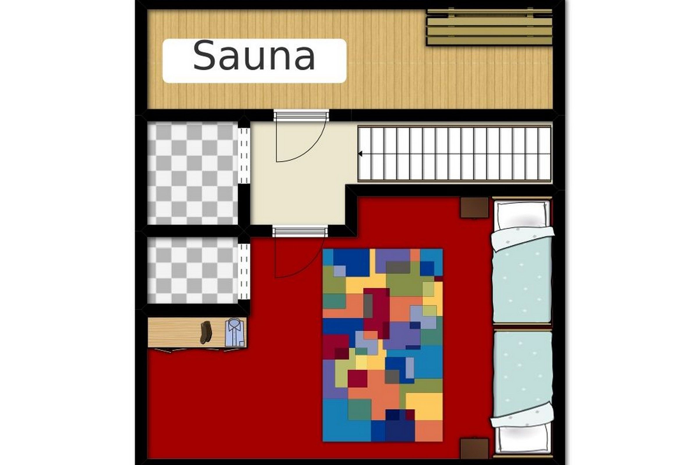 Diese 60qm große komfortable 3-Zimmer-Wohnung im 1.OG bietet über 2 Ebenen nicht nur eine familienfreundliche Ausstattung für 3 Gäste, sondern auch eine schöne Sauna im Dachgeschoss.
