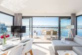 Das moderne Floating House Fjordblik liegt ruhig und malerisch im Yachthafen von Barth, direkt am Bodden und nur einen Sprung entfernt von der Ostseeküste des Fischland-Darß-Zingst. Auf 44m² Wohnfläche erwarten dich zwei Schlafzimmer, ein offener, lichtdurchfluteter Wohnbereich und ein ganz besonderes Lebensgefühl zwischen Himmel und Wasser. Ideal für bis zu 6 Personen, bietet dir das Fjordblik alles, was du für einen erholsamen Urlaub brauchst: eine überdachte Terrasse am Bug mit Grill und Gartenmöbeln, eine großzügige Sonnenterrasse auf dem Dach, WLAN und dein eigener Parkplatz direkt am Hafen. Für deinen Komfort stehen dir außerdem Waschmaschine & Trockner (gegen Gebühr), ein Yacht- und Angel-Shop und im Sommer sogar ein kleiner Kiosk auf dem Gelände zur Verfügung.