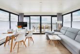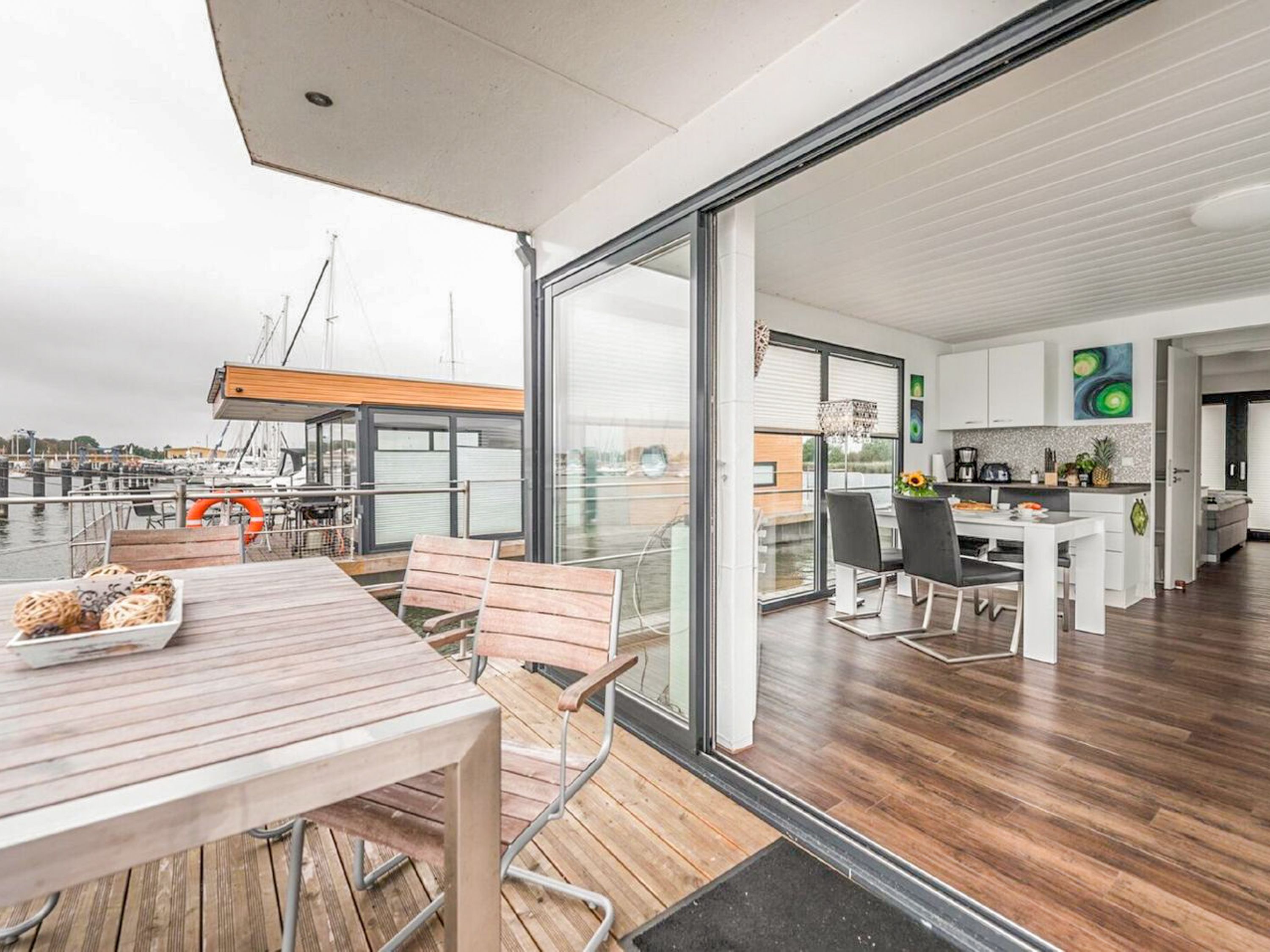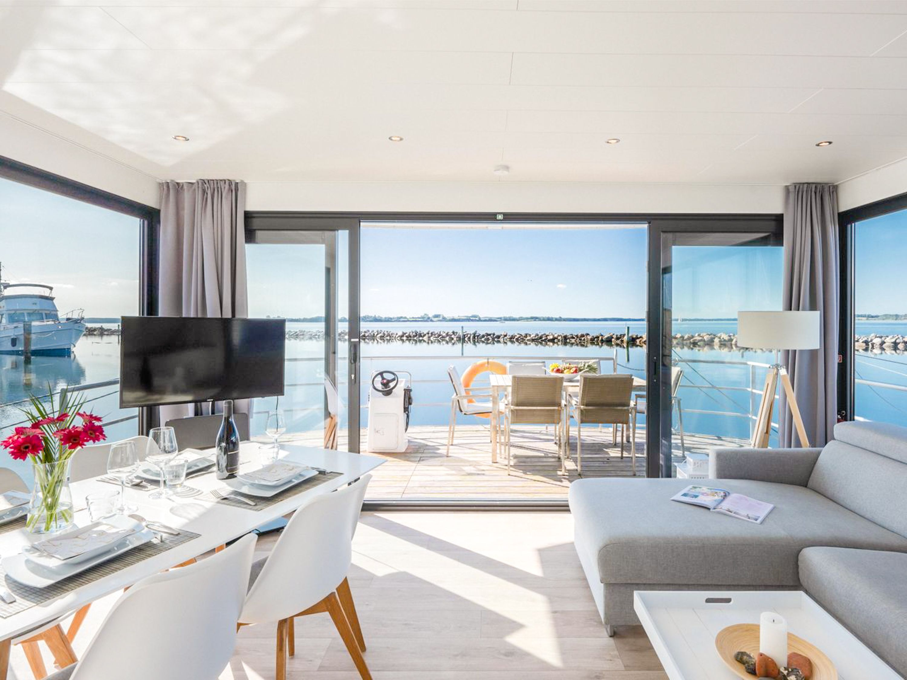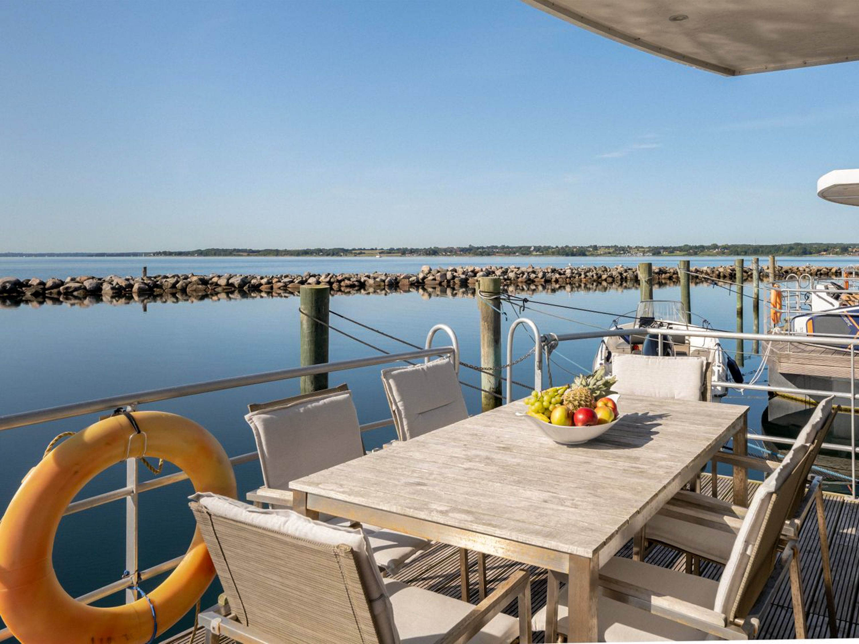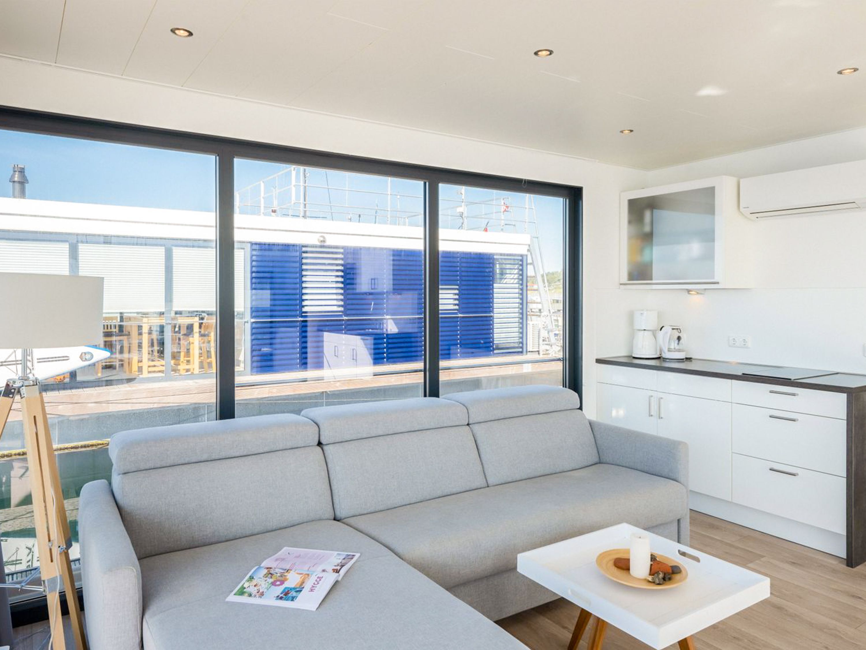 Modern, lichtdurchflutet und liebevoll eingerichtet das Floating House Fjordblik ist ein echtes Raumwunder auf 44m². Dieses festliegende Hausboot bietet dir ein Urlaubszuhause mit klarer Linie, maritimer Leichtigkeit und allem Komfort, den du brauchst, um dich rundum wohlzufühlen. Platz ist für bis zu 6 Personen, aufgeteilt in zwei separate Schlafzimmer und einen offenen Wohnbereich. Der Wohn- und Essbereich ist das Herzstück des Hausboots: Großzügige Fensterfronten lassen das Licht hereinströmen und schenken dir vom Sofa oder Esstisch aus einen wunderbaren Blick auf den Hafen. Die offene Küche ist stilvoll in den Raum integriert und komplett ausgestattet mit Ceranfeld, Mikrowelle, Kühlschrank mit Gefrierfach, Spülmaschine, Kaffeemaschine, Wasserkocher und Toaster. Ob Frühstück mit Blick aufs Wasser oder ein Glas Wein zum Sonnenuntergang hier wird selbst das Kochen zum Urlaubsritual. Die beiden Schlafzimmer sind mit bequemen Doppelbetten (160x200) ausgestattet, jedes mit Klimaanlage, Stauraum und Verdunklungsmöglichkeiten für erholsame Nächte. Auch im Wohnzimmer sorgt eine moderne Klimaanlage für angenehmes Raumklima oder eine Heizung, falls es draußen mal frischer wird. Das Schlafsofa (140x200) sorgt hier für erholsamen Schlaf. Das Hausboot verfügt über ein modernes Duschbad mit Waschbecken und Spiegel sowie ein separates WC, sodass es morgens auch bei voller Belegung entspannt bleibt. Draußen warten gleich zwei echte Highlights auf dich: Die überdachte Bugterrasse mit Gartenmöbeln und Grill lädt zum Frühstück im Freien oder gemütlichen Abendessen ein. Auf dem Sonnendeck oben kannst du dich auf den Liegen entspannen, lesen, Sonne tanken oder einfach aufs Wasser schauen und die Zeit vergessen.