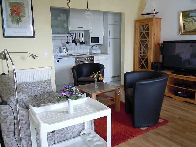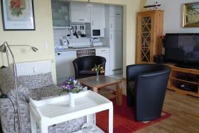 Die moderne 40 qm große Ferienwohnung WE 2- befindet sich im Parterre eines neuerbauten Appartementhauses. Sie verfügt über einen kombinierten Wohn/Schlafraum mit Schlafsofa, einen separaten Schlafraum und eine Küchenzeile, durch den Schlafraum ist das Bad mit Dusche und WC zu erreichen. Bei schönem Wetter lädt eine Terrasse mit Gartenmöbeln zum Verweilen ein. Die Erstaustattung der Bettwäsche und Handtücher ist inclusive. Ein Fahrradunterstand gehört zum Haus.