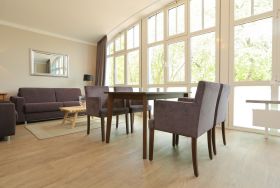 Die 2-Zimmer-Wohnung befindet sich im 1.OG (Richtung Mittelpromenade) und bietet auf rund 58qm Wohnfläche eine moderne Ausstattung für bis zu 4 Gäste.