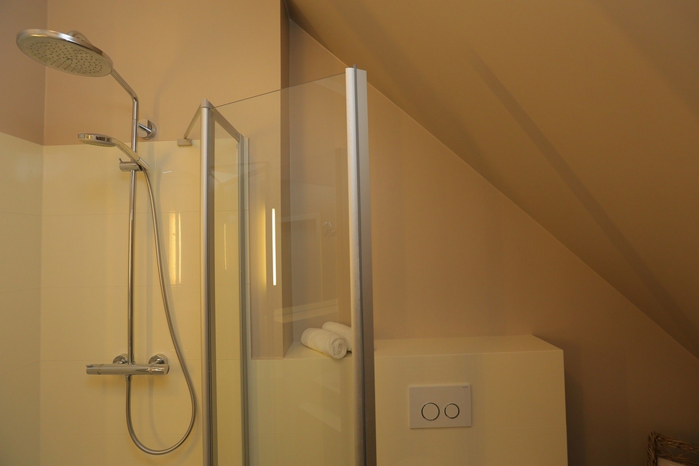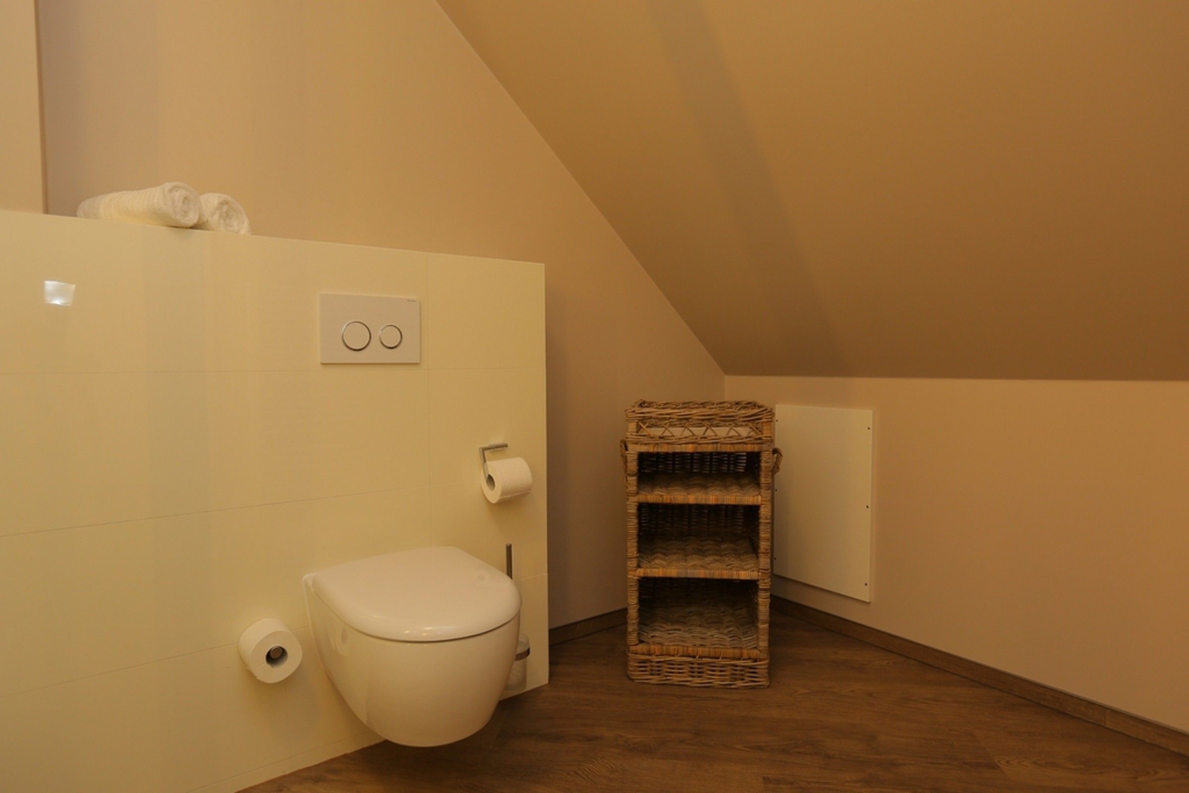 Ein modernes Duschbad mit WC komplettiert die geschmackvolle Nichtraucherwohnung.