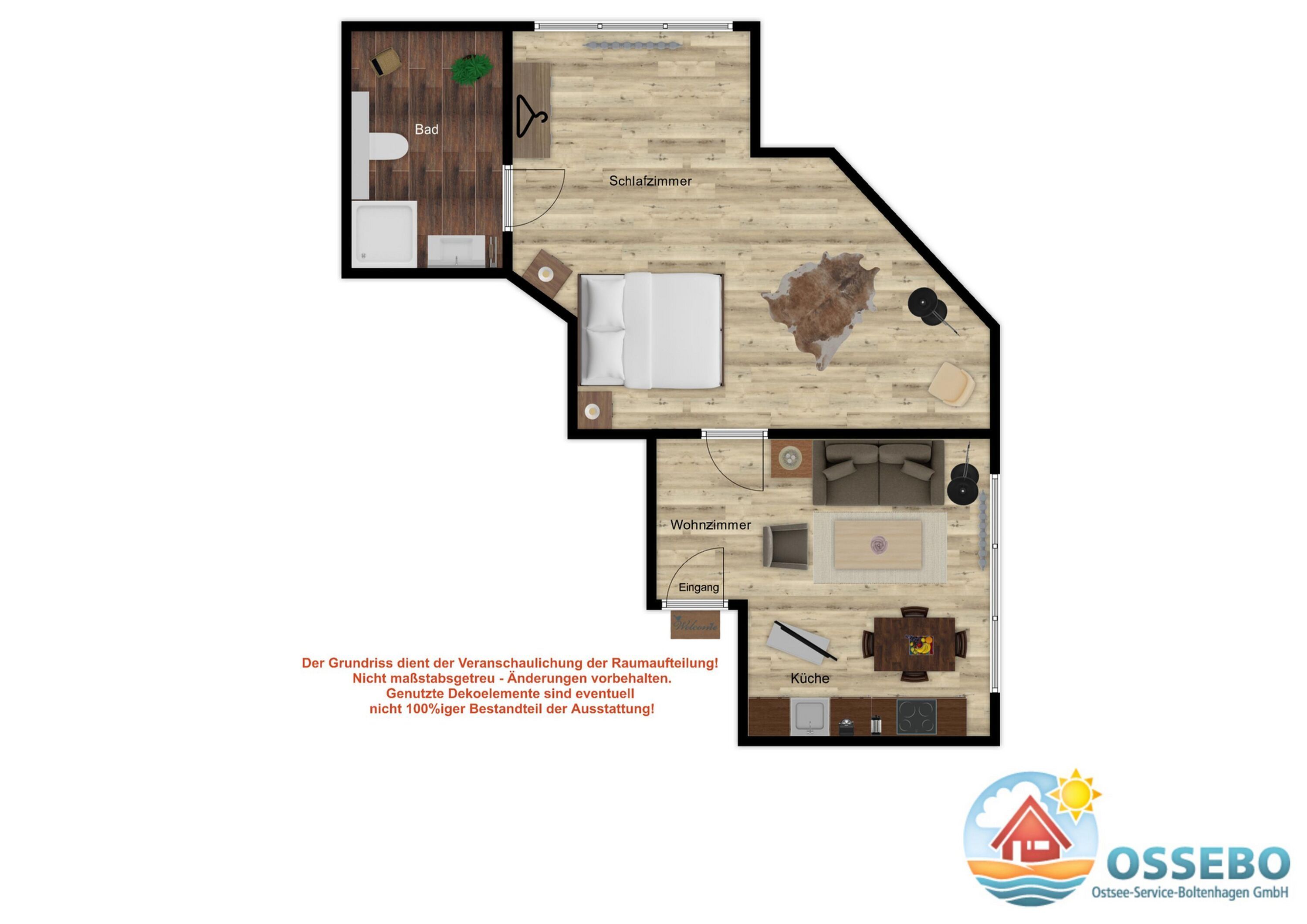 Stilvolle Logis im Ostseebad Boltenhagen: 2-Zimmer-Ferienwohnung mit viel Komfort für bis zu 4 Personen.