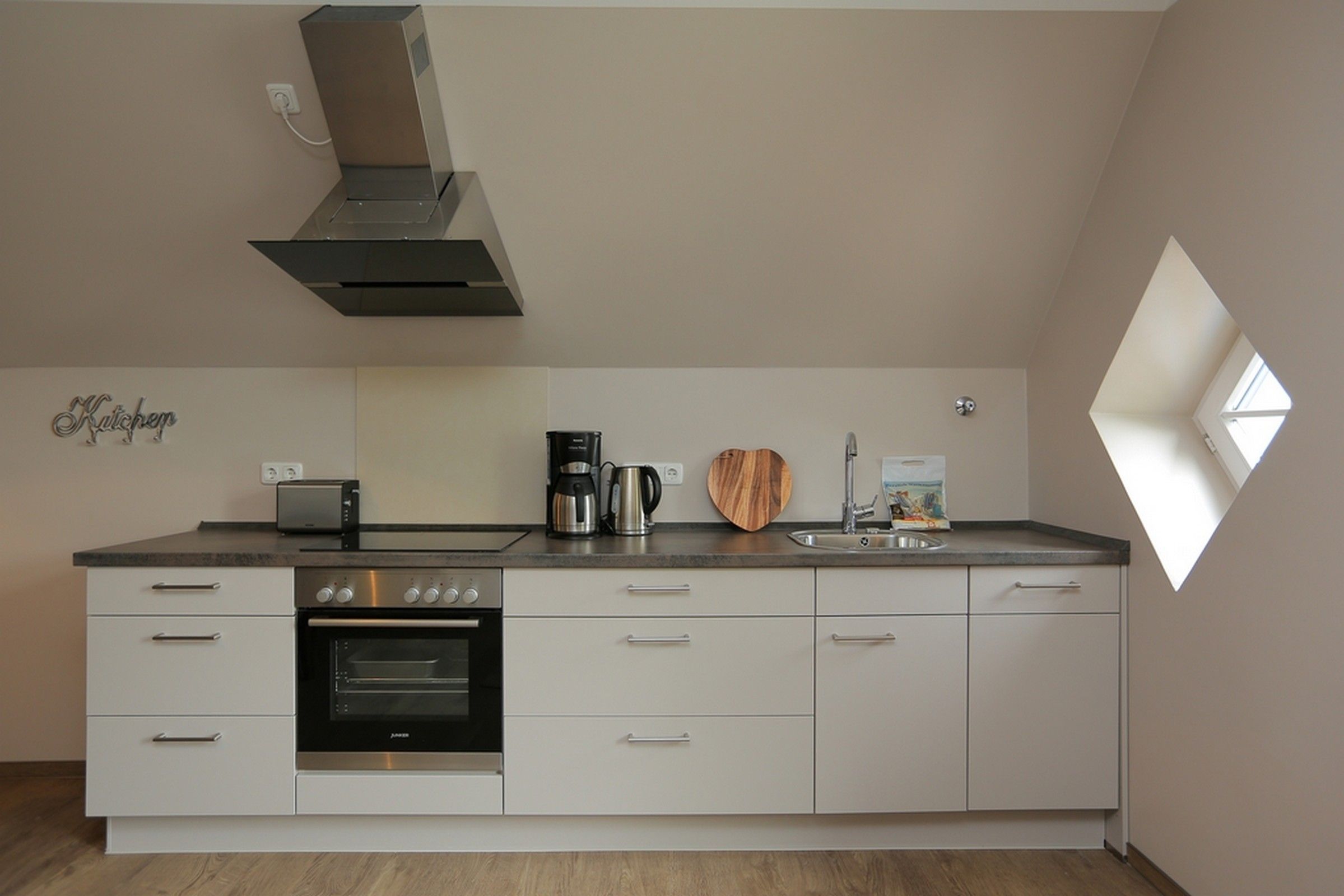Die hier integrierte Küchenzeile verfügt über alle notwendigen Kochgerätschaften.