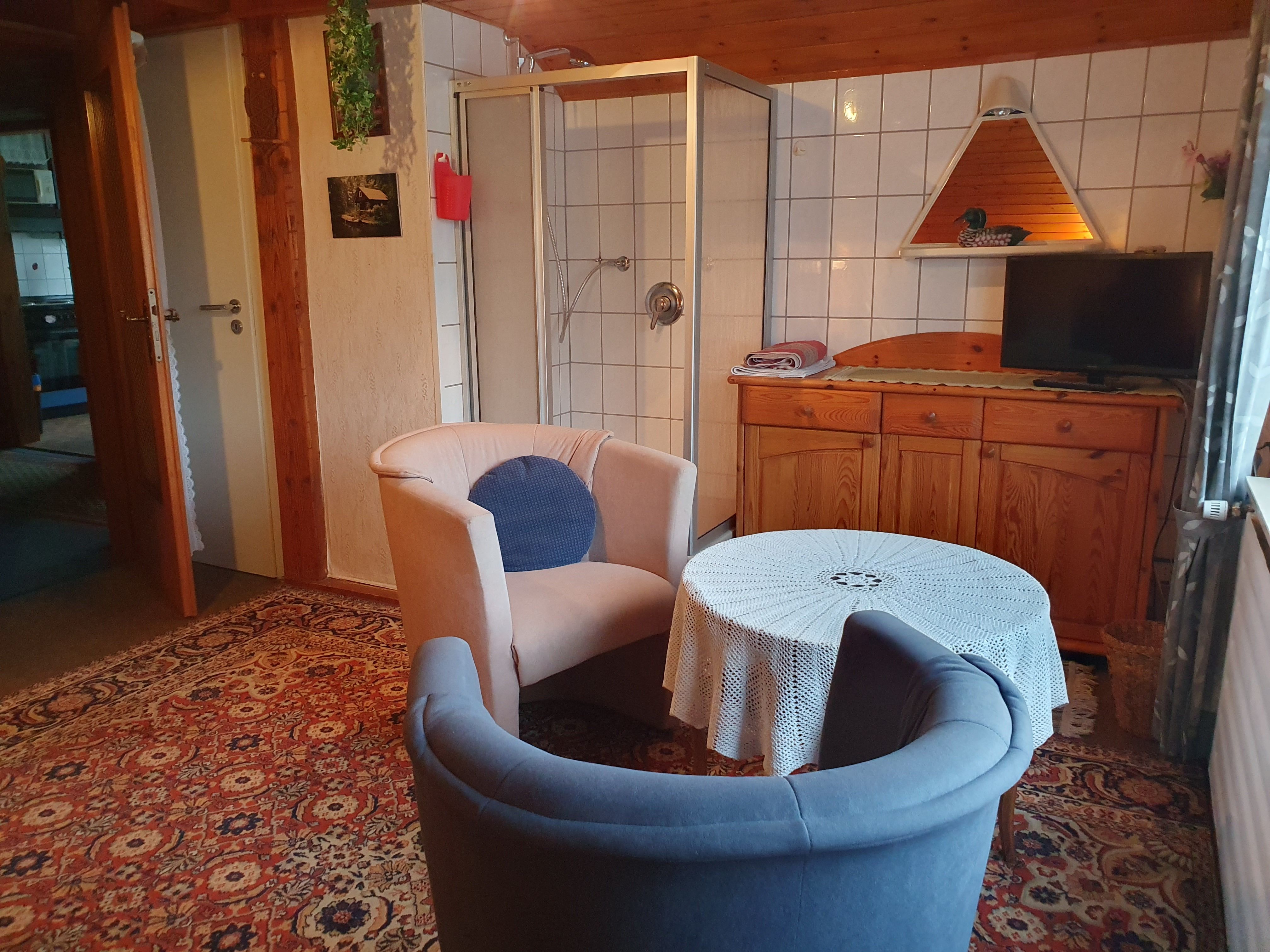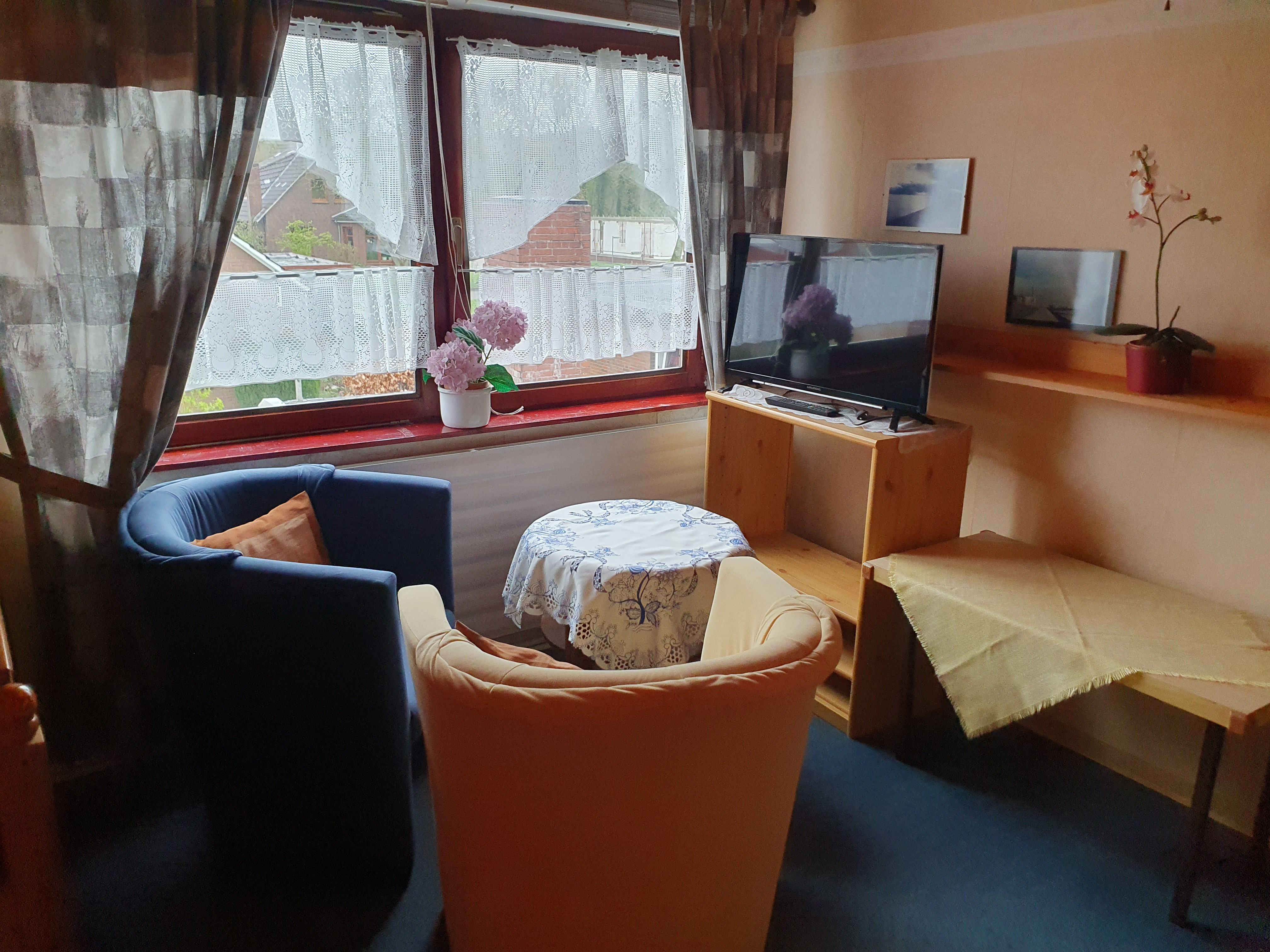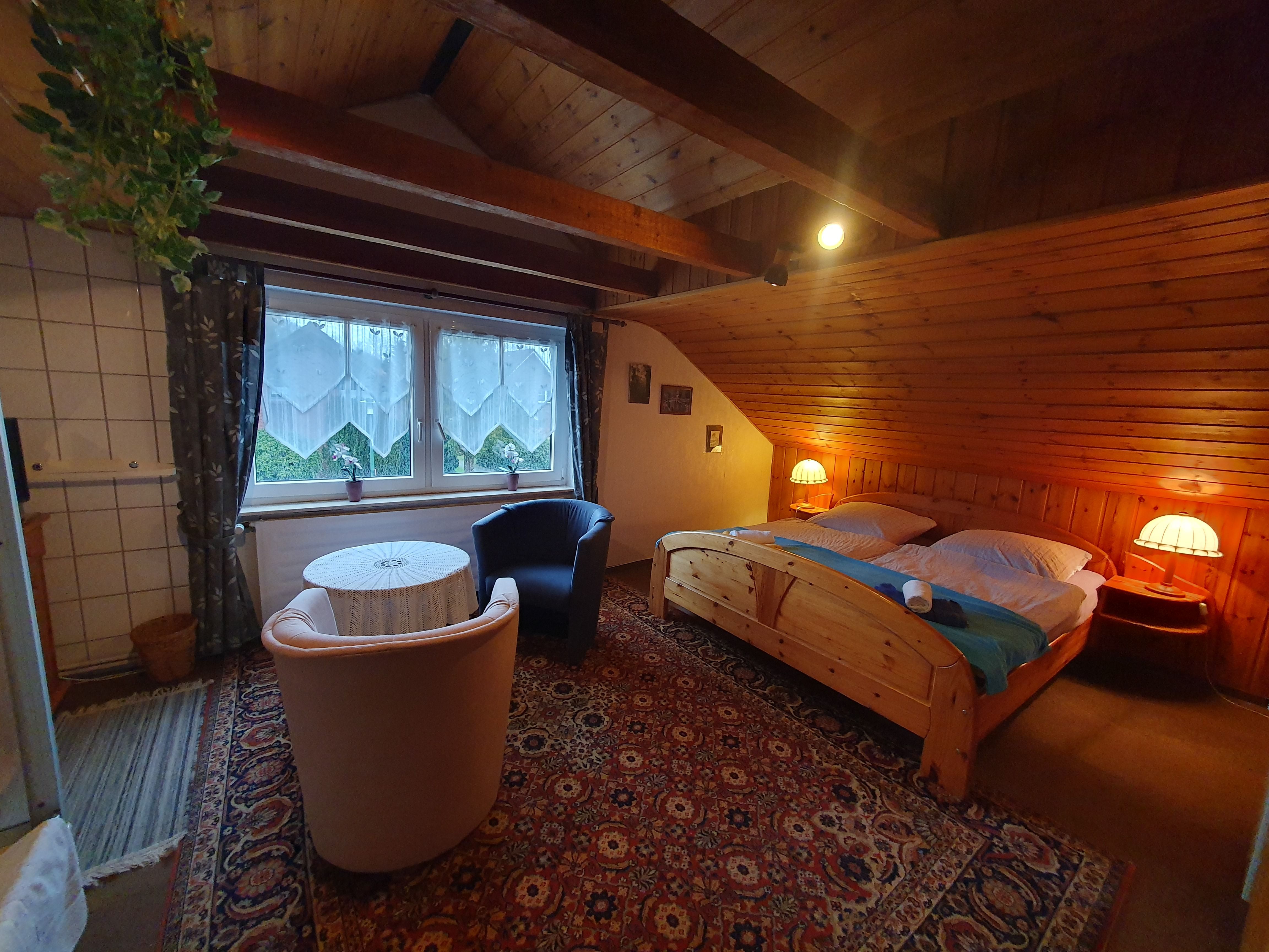 Wir bieten unseren Gästen 2 Doppelzimmer und 1 Einzelzimmer in zentraler, aber ruhiger Wohnlage (FeWo in Mehrfamilienhaus). Dabei steht weiterhin ein Aufenthaltsraum sowie eine Küche zur Verfügung - unsere Ferienwohnung ist somit auch auf Wunsch als Privatunterkunft nutzbar. Auch der vorhandene Wintergarten, wie auch unser schöner Garten am Haus steht unseren Gästen zur Verfügung.Infos über die Region und zu Veranstaltungen liegen aus. Die Zimmer bzw. Wohnung hat keinen separaten Eingang und befindet sich im Wohnhaus vom Vermieter.