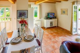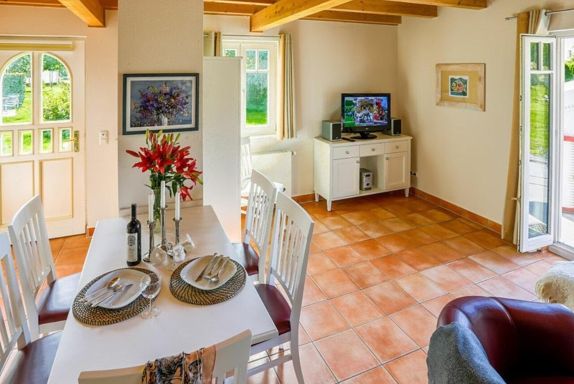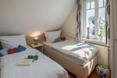 Eine Wendeltreppe führt Sie in das Obergeschoss. Hier befinden sich zwei Schlafzimmer, eines ist mit einem komfortablen Doppelbett und das zweite mit zwei Einzelbetten eingerichtet. In beiden Schlafzimmern steht Ihnen je ein geräumiger Kleiderschrank für Ihre Urlaubsgarderobe zur Verfügung.
