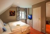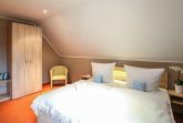 Die beiden Schlafzimmer, mit je einem komfortablen Doppelbett ausgestattet, befinden sich im Obergeschoss des Hauses, zu erreichen über eine Wendeltreppe. In einem der beiden Zimmer steht Ihnen ein zusätzliches Fernsehgerät zur Verfügung. In beiden Schlafzimmern sorgt je ein geräumiger Kleiderschrank für die Unterbringung Ihrer gesamten Urlaubsgarderobe.