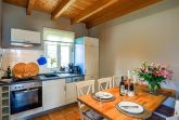 Ebenfalls im Erdgeschoss befindet sich der großzügige offene Küchenbereich. Dieser besteht aus einem großen Esstisch mit 6 Stühlen sowie einer voll ausgestatteten, modernen Küche. Für die Zubereitung Ihrer Mahlzeiten stehen Ihnen alle praktischen Geräte und Küchenutensilien zur Verfügung.