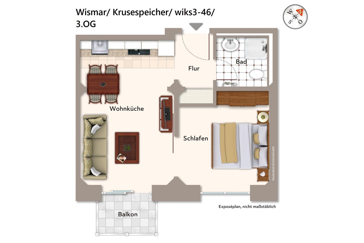Das Nichtraucher-Apartment in Ost-Lage befindet sich im 3. Obergeschoss des denkmalgeschützten Krusespeichers. Der Alte Hafen von Wismar, einer der attraktivsten Orte der weltoffenen Hansestadt, liegt euch zu Füßen. Von hier aus lässt sich die Stadt und das wunderschöne Umland ideal erkunden. Der Alte Hafen ist übrigens überaus beliebter Veranstaltungsort für Events und Feste und überdies Original-Drehort für SOKO Wismar, die bekannte ZDF-Serie!
