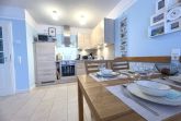 Die Wohnung ist modern und geschmackvoll eingerichtet. Das Wohnzimmer ist mit einem gemütlichen Sofa, einem Fernseher sowie einer HiFi-Anlage ausgestattet, sodass Sie sich nach einem erlebnisreichen Tag entspannen können. Eine offene Küche, die zum Wohnzimmer hin ausgerichtet ist, bietet Ihnen alle Annehmlichkeiten, die Sie für Ihre kulinarischen Kreationen benötigen. Dazu gehören ein Geschirrspüler, eine Mikrowelle, ein Backofen sowie Küchengeräte wie Wasserkocher, Toaster und Kaffeemaschine. Ein Essbereich lädt zu gemeinsamen Mahlzeiten ein.