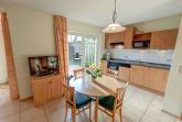 Die Kategorie I Wohnungen befinden sich im Erdgeschoss eines Hauses. Sie bieten eine Fläche von 64 m² und verfügen über zwei separate Schlafzimmer, davon eins mit einem Doppelbett und eins mit zwei Einzelbetten. Im Wohnzimmer gibt es zudem eine Schlafcouch, wodurch insgesamt ausreichend Platz für 4-5 Personen geboten wird. Beide Wohnungen haben eine Terrasse mit Südwest Ausrichtung. Ein kostenloser PKW-Stellplatz und die Nutzung von W-LAN sind inbegriffen. Im Haus gibt es auch einen Hauswirtschaftsraum, in dem gegen Gebühr eine Waschmaschine und ein Trockner zur Verfügung stehen.