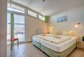 Die gemütlichen Dachgeschosswohnungen mit großem Balkon und einer Wohnfläche von 48 m² sind für bis zu 3 Personen geeignet. Die Nichtraucherwohnungen haben eine gehobene, komplett ausgestattete Küche, mit Mikrowelle, Backofen und Spülmaschine, SAT-TV.