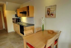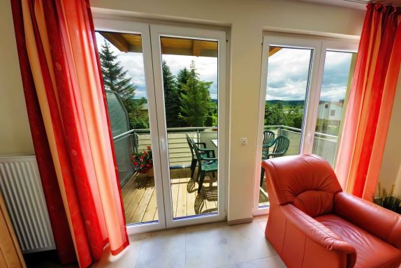 Die Wohnungen im Obergeschoss (mit einer Größe von jeweils 52 m²) für 2 Personen sind durch ihre Hanglage fast ebenerdig und über wenige Stufen zu erreichen.