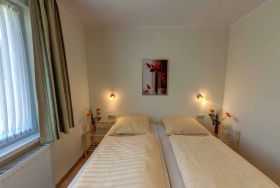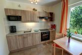Erdgeschoss 38 m² (2 Personen) Zur Ausstattung der Erdgeschoss Wohnung gehört ein Schlafzimmer mit Doppeltbett , ein Wohnzimmer mit integrierter vollausgestatteter Küche (Geschirrspüler, Ceranherd mit Backofen, Mikrowelle, Kaffeemaschine) einem Bad mit Dusche/WC und einer großen Terrasse mit Sitzmöglichkeiten.