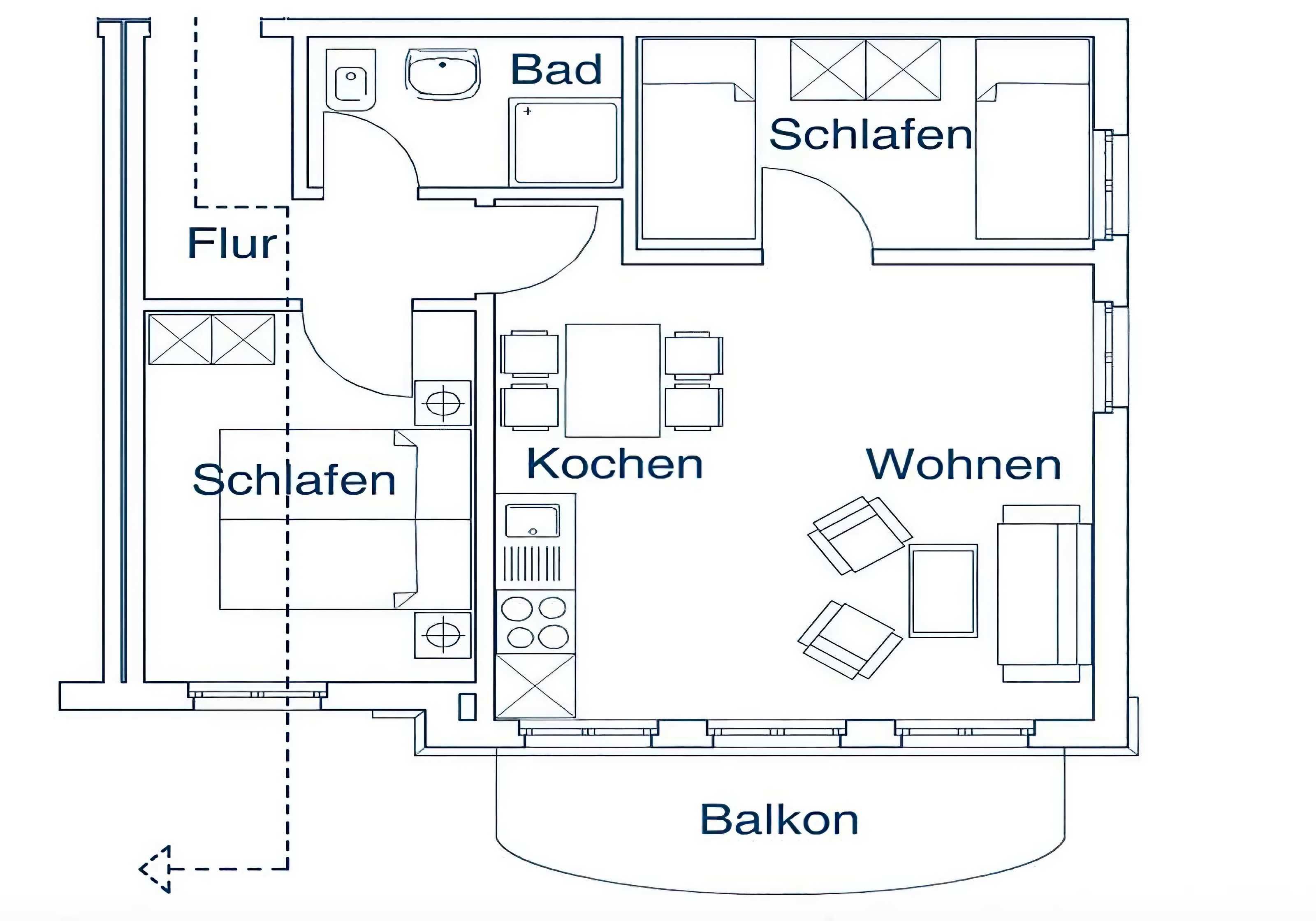 Die Ferienwohnung Villa Sonnenglück, App. 26 bietet auf einer Fläche von 50 m² Platz für maximal 4 Personen. Sie verfügt über 2 gemütliche Schlafzimmer und ein modernes Badezimmer. Die Wohnung befindet sich im Haus Villa Sonnenglück und ist mit folgender Ausstattung ausgestattet: Flachbildfernseher, Fahrradabstellmöglichkeit, Parkplatz, WLAN/Internet, Mikrowelle, Geschirrspüler, Wäschetrockner und Waschmaschine. In der offenen Wohnküche können Sie sich selbst verpflegen und auf dem Balkon entspannen. Für die musikalische Unterhaltung steht Ihnen eine Musikanlage zur Verfügung. Die Ferienwohnung ist sowohl familien- als auch radfreundlich.