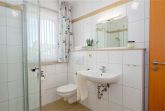 In der Wohnküche befindet sich eine voll ausgestattete Küchenzeile mit Herd, Kühlschrank und Geschirrspüler. Das Badezimmer verfügt über eine Dusche und eine Toilette. Die Wohnung ist barrierefrei zugänglich und verfügt über einen eigenen Parkplatz.