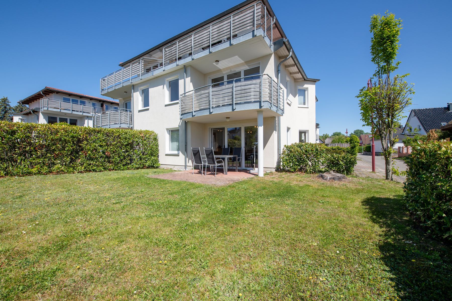 Die Erdgeschosswohnungen haben eine Größe von ca. 65 m² und bieten Platz für insgesamt 4 Personen. Sie sind mit 2 getrennten Schlafzimmern ausgestattet und verfügen über eine Terrasse mit Sitzmöglichkeiten für bis zu 4 Personen. In der Wohnküche befindet sich eine voll ausgestattete Küchenzeile mit Herd, Kühlschrank und Geschirrspüler. Das Badezimmer ist mit einer Dusche und einer Toilette ausgestattet. Die Wohnung ist barrierefrei zugänglich und verfügt über einen eigenen Parkplatz.