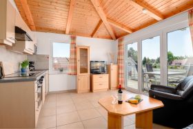 Die Dachgeschosswohnungen sind geeignet für bis zu 2 Personen und verfügen über einen großen Balkon sowie eine Wohnfläche von 48 m². Sie sind Nichtraucherwohnungen und bieten eine gehobene Ausstattung mit einer komplett ausgestatteten Küche, inklusive Mikrowelle, Backofen und Spülmaschine. Zudem gibt es SAT-TV in den Wohnungen. Das Badezimmer ist mit einer Dusche und einem WC ausgestattet. Ein Parkplatz ist im Preis inbegriffen.