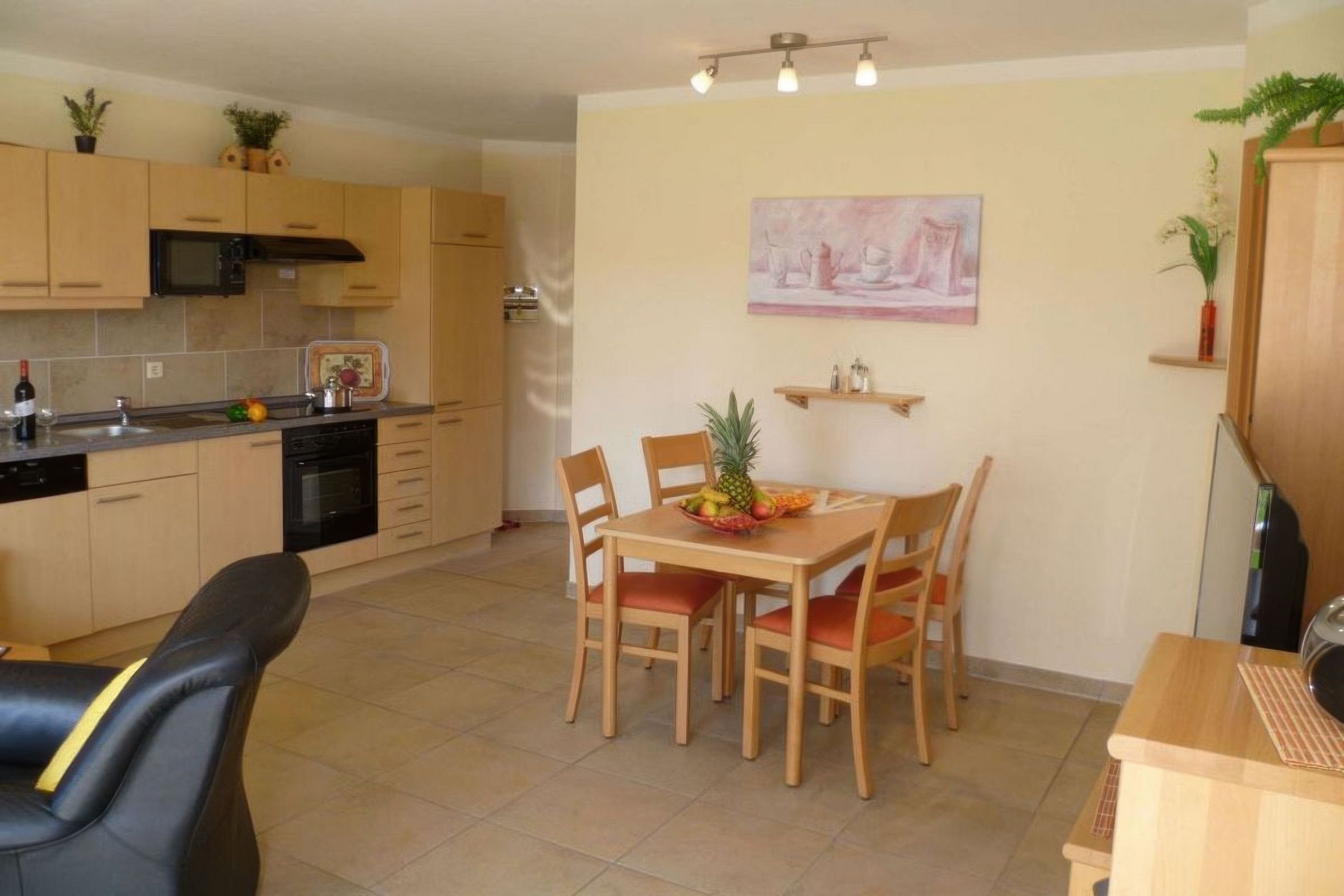 Die Ferienwohnung bietet mit ihrer Größe von 54 m² ausreichend Platz für bis zu 4 Personen. Sie besteht aus 2 gemütlichen Schlafzimmern und einem Badezimmer. Gelegen im Haus , bietet sie neben einem Flachbildfernseher auch eine Fahrradabstellmöglichkeit und einen Parkplatz. WLAN / Internet ist ebenfalls vorhanden. Die offene Wohnküche ermöglicht Selbstversorgung und bietet einen schönen Blick auf die Terrasse. Auch ein Hund ist hier willkommen. Die Einrichtung der Ferienwohnung ist familienfreundlich gestaltet.