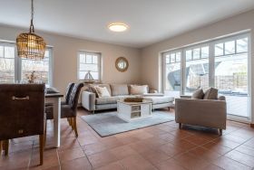 Die Unterkunft verfügt über insgesamt 4 Zimmer, darunter 3 Schlafzimmer, die viel Platz und Privatsphäre bieten. Im Parterre genießen Sie eine offene Küche, die mit modernen Annehmlichkeiten ausgestattet ist, darunter ein Cerankochfeld, Backofen, Kühlschrank mit Gefrierfach und Geschirrspüler. Die Küchenutensilien sind vollständig vorhanden, sodass Sie Ihre Lieblingsgerichte zubereiten können. Ein gemütlicher Essbereich verbindet die Küche mit dem Wohnzimmer.
