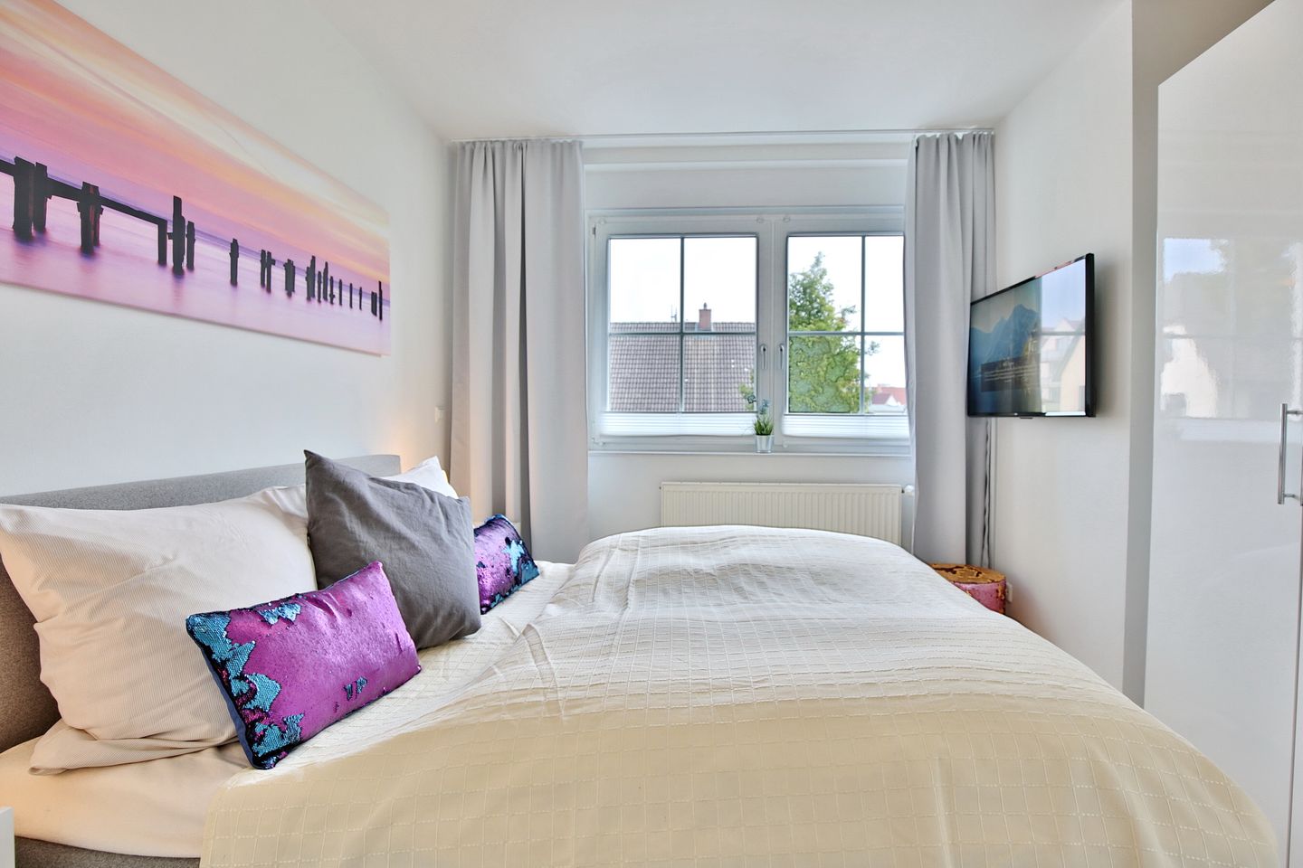 Herzlich Willkommen in der lichtdurchfluteten und sehr gepflegten 2 Zimmer-Ferienwohnung im 1.Stock. Diese Wohnung in zentraler Lage, nur ca. 250 m, vom Strand und der Dünenmeile entfernt, bietet auf ca. 45 qm einen komfortablen Urlaub für 2 Personen.