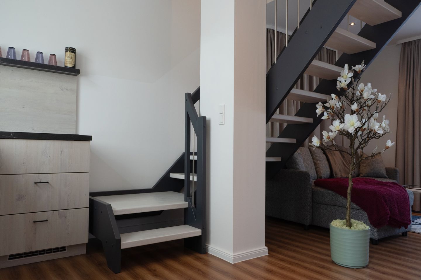 Mit zwei liebevoll eingerichteten Schlafzimmern bietet die Sonnenwelle Platz für bis zu vier Gäste. Die Räume sind durchdacht gestaltet, ruhig gelegen und sorgen mit hochwertigen Matratzen und verdunkelbaren Fenstern für erholsame Nächte. Das elegante Duschbad mit ebenerdiger Dusche wird durch eine eigene Sauna ergänzt – perfekt, um nach einem langen Tag an der Ostsee neue Energie zu tanken. Ein zusätzliches Gäste-WC rundet das Raumangebot harmonisch ab.
