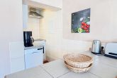 Die moderne Küche verfügt über Cerankochfeld, Backofen, Geschirrspüler, Mikrowelle, Kühlschrank sowie die üblichen technischen Geräte.