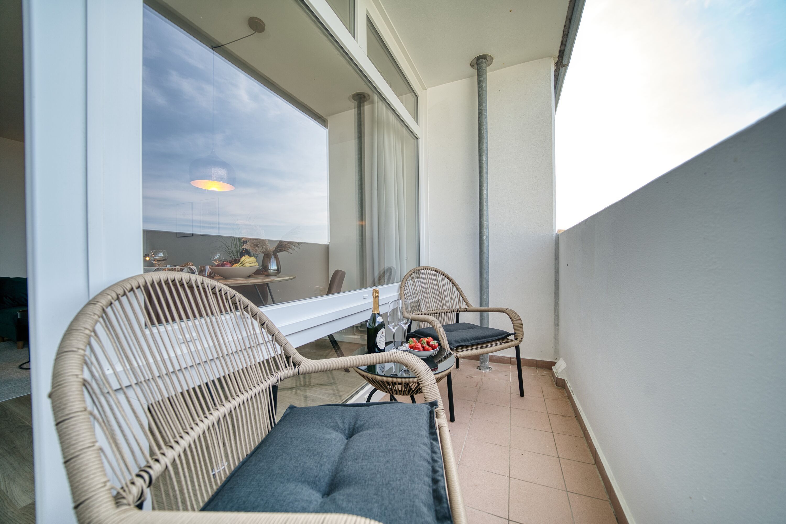 • Balkon mit Meerblick: Von dem nach Westen ausgerichteten Balkon haben Sie einen beeindruckenden Blick auf das Meer und das Naturschutzgebiet hier lässt sich ein erfrischender Sundowner in vollen Zügen genießen.
