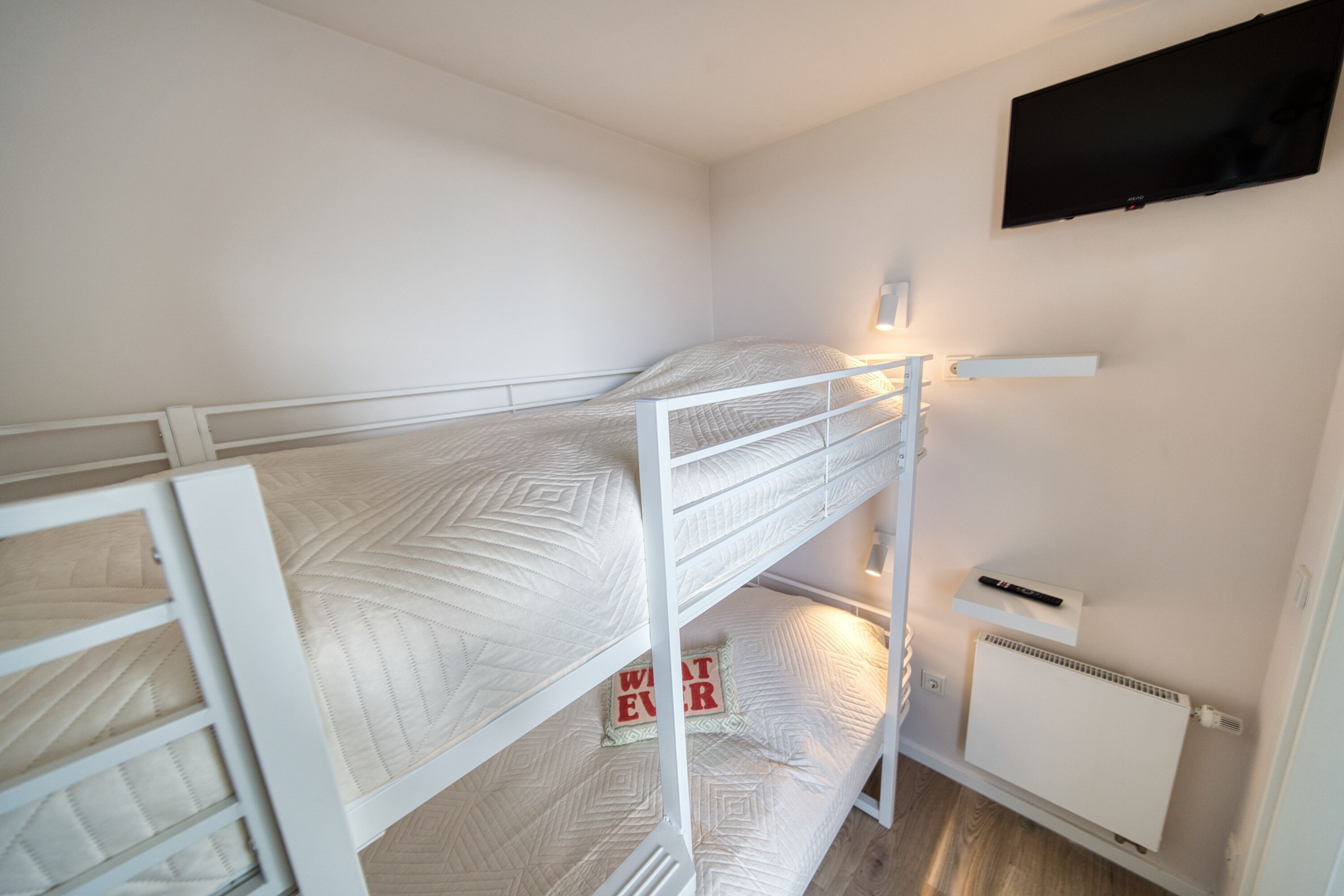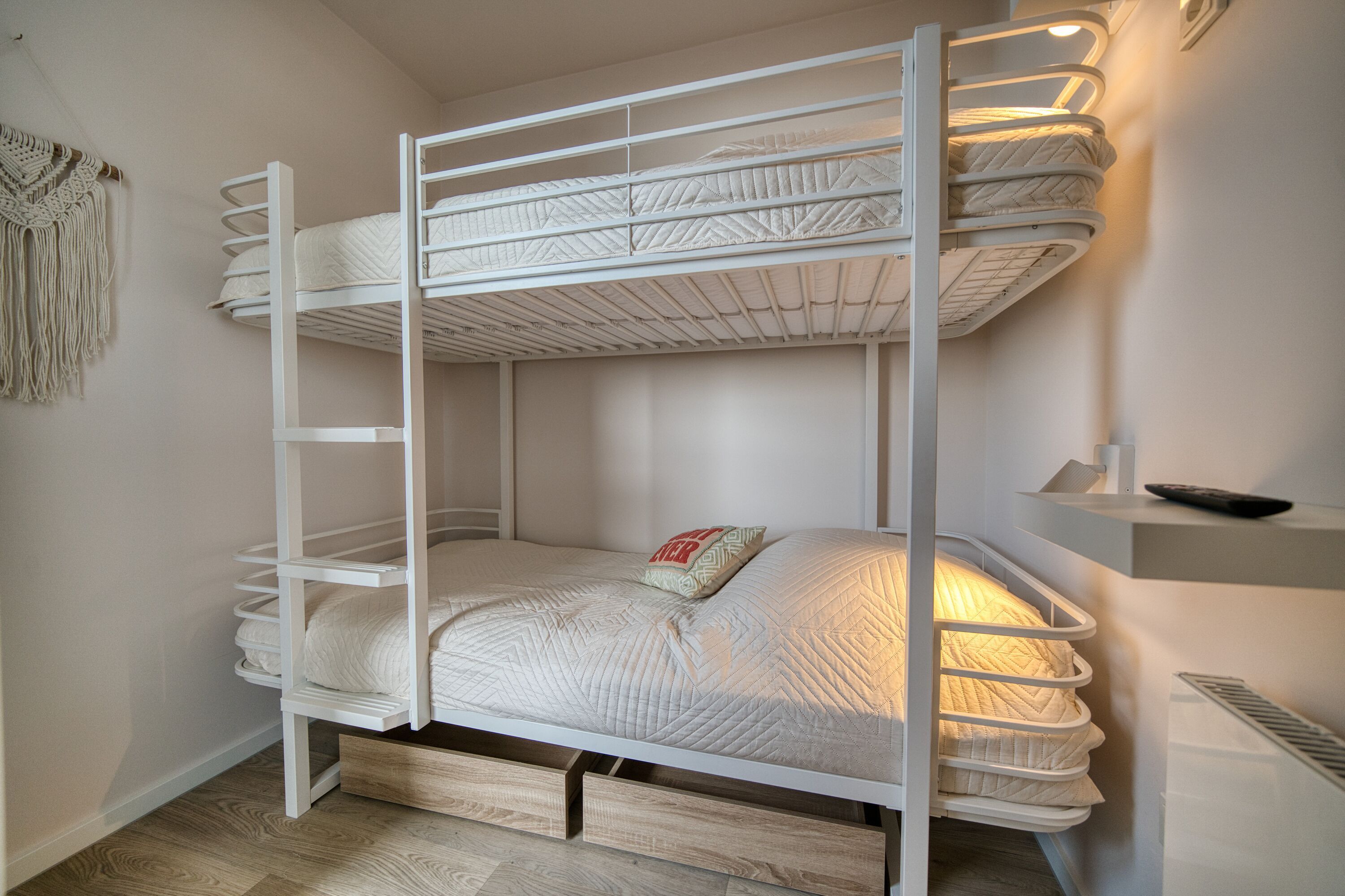 • Kinderzimmer: Das Kinderzimmer bietet ein praktisches Etagenbett mit darunterliegenden Bettschubladen zum Verstauen von Kleidungsstücken perfekt für die Kleinen.