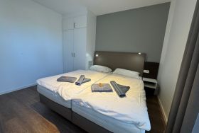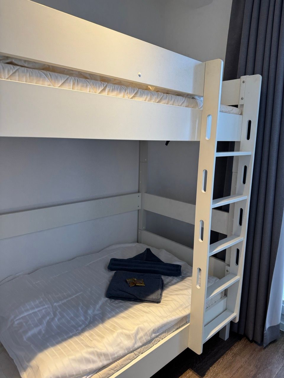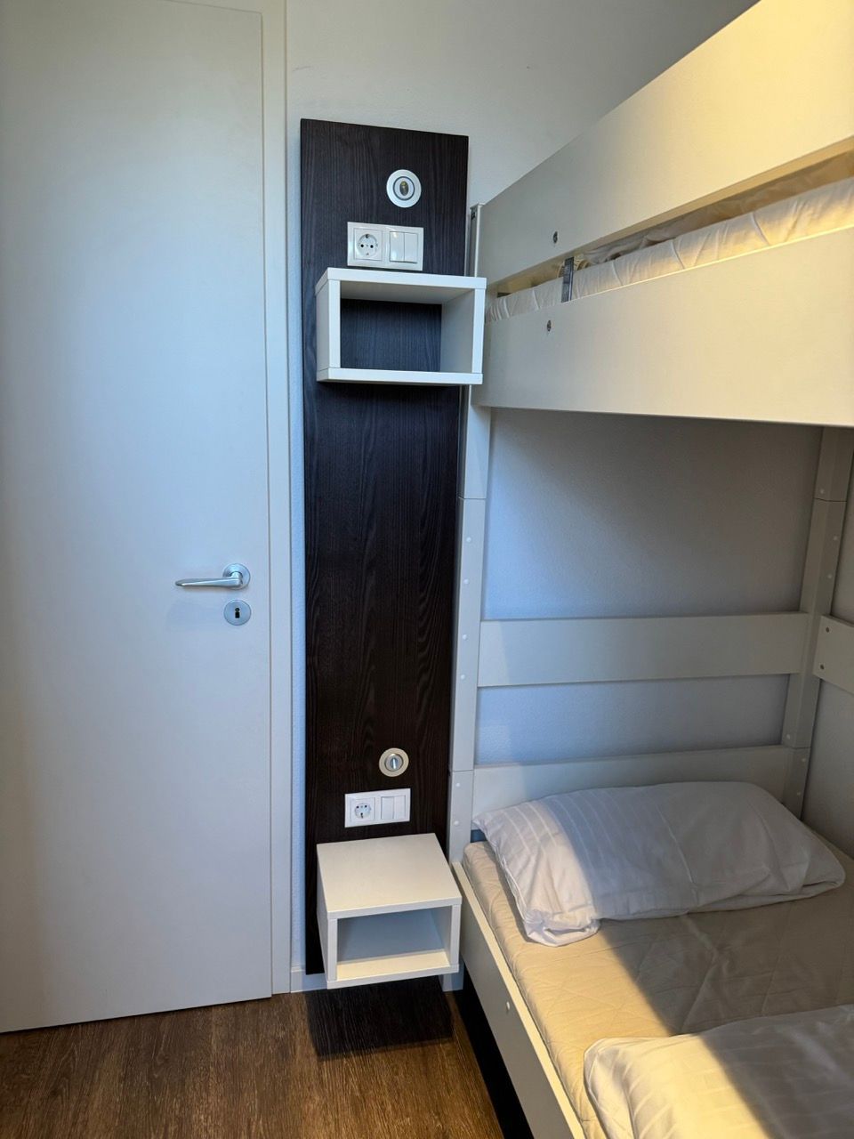 Schlafzimmer & weitere Schlafgelegenheit Erholsamer Schlaf für bis zu vier PersonenDas separate Schlafzimmer ist mit einem komfortablen Doppelbett ausgestattet. Verdunkelungsmöglichkeiten sorgen für ungestörten Schlaf, auch an hellen Tagen. Ein großer Kleiderschrank bietet ausreichend Stauraum für Kleidung, Koffer und Gepäck.