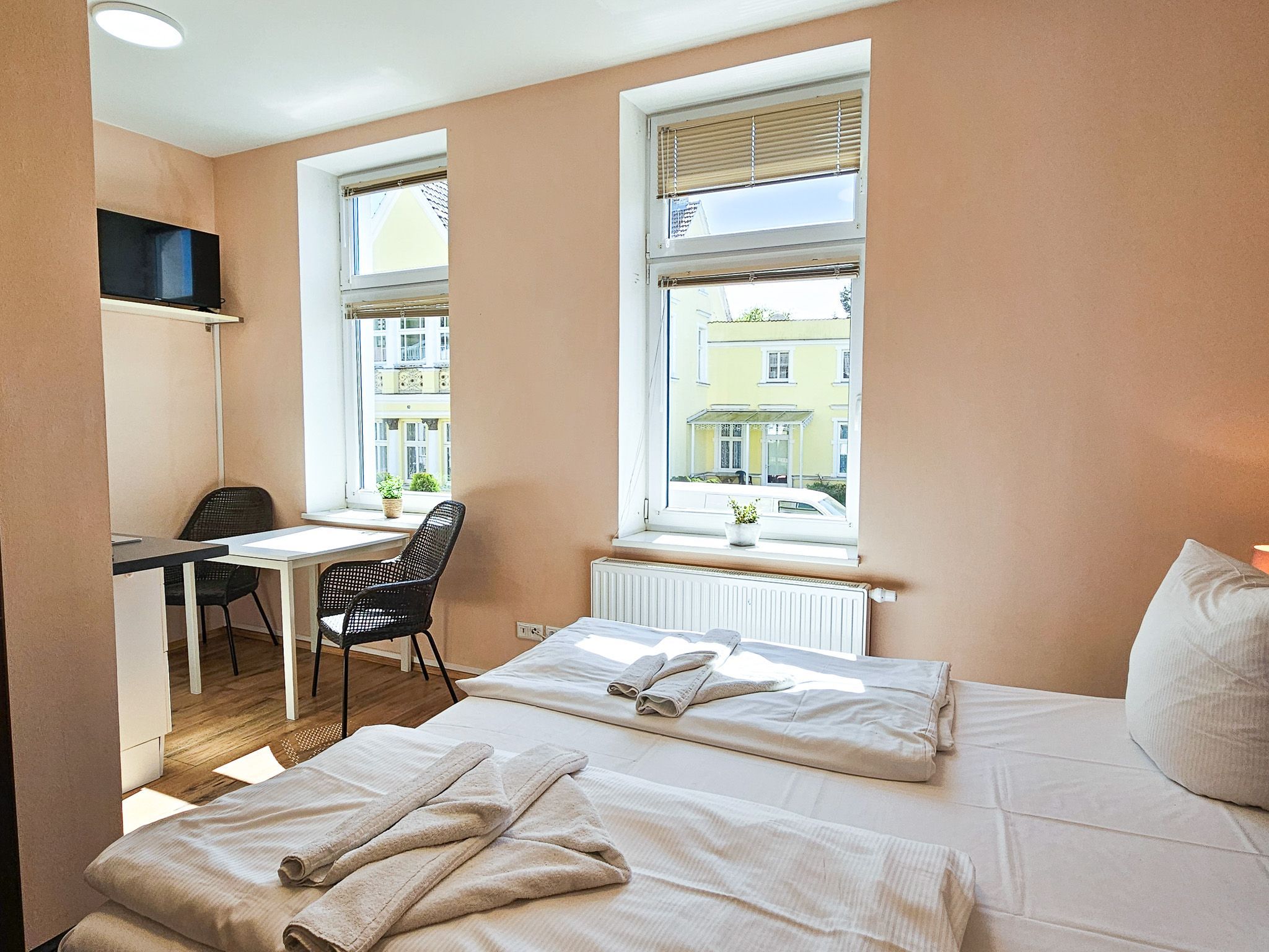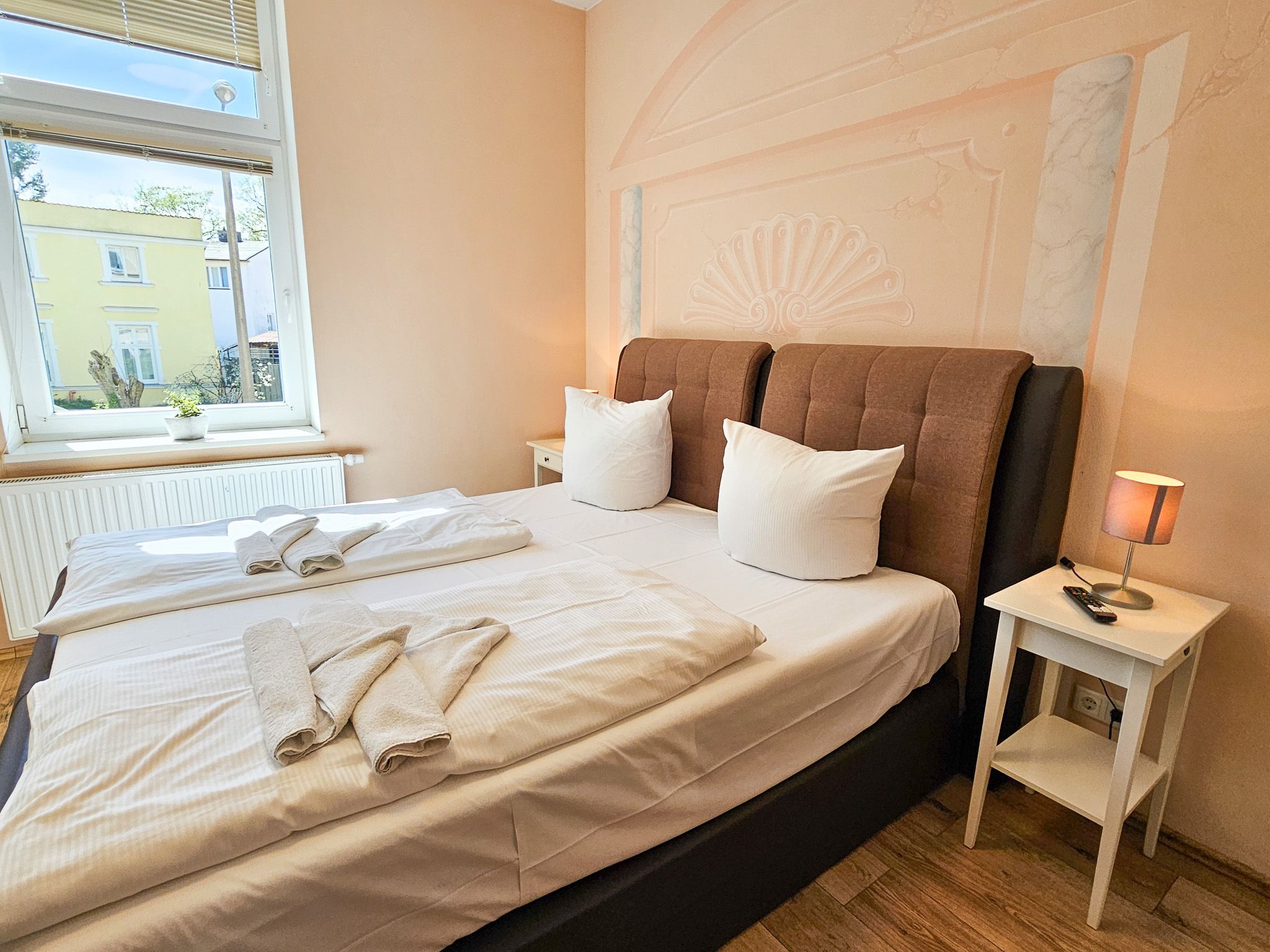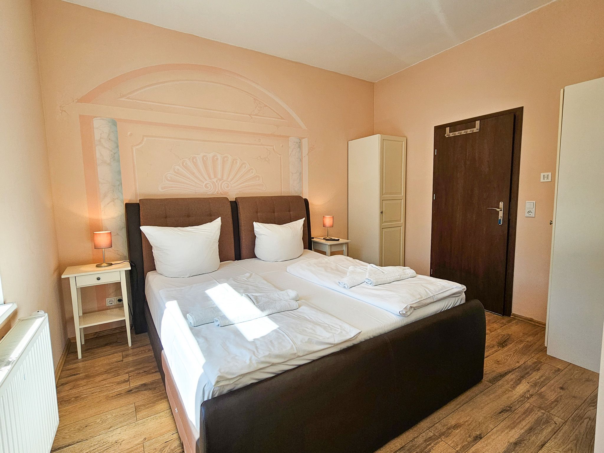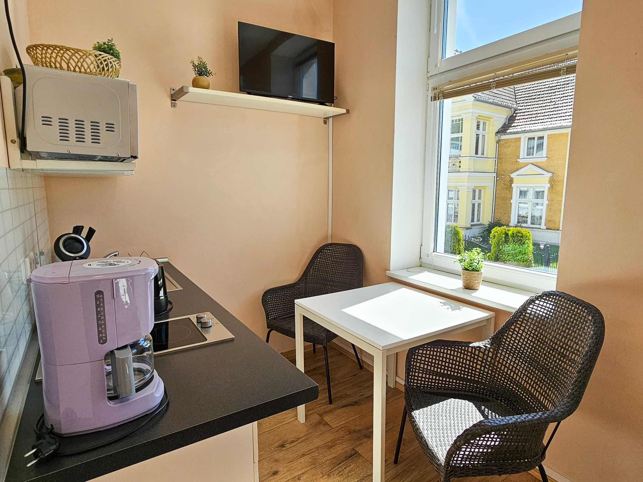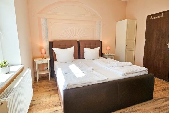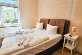 Die 20m² große 1-Raum-Ferienwohnung befindet sich im Erdgeschoss der Villa Utpatel und bietet Platz für zwei Erwachsene.