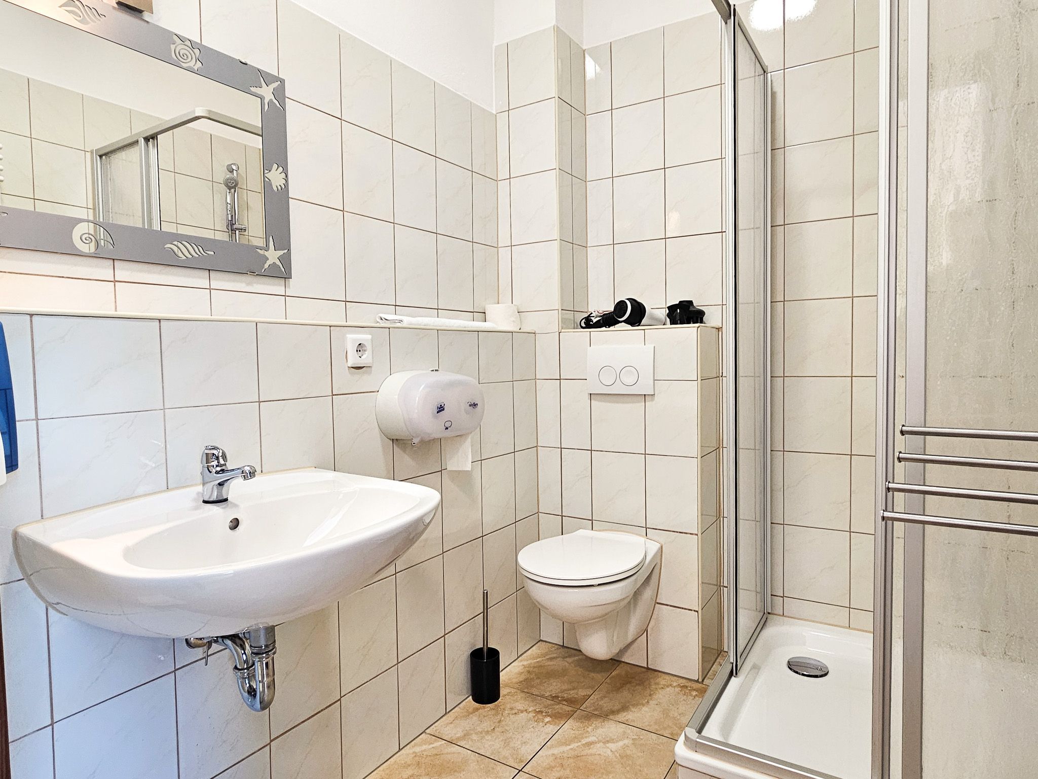 Selbstverständlich steht Ihnen auch ein Badezimmer mit einem WC und einer Dusche zur Verfügung.