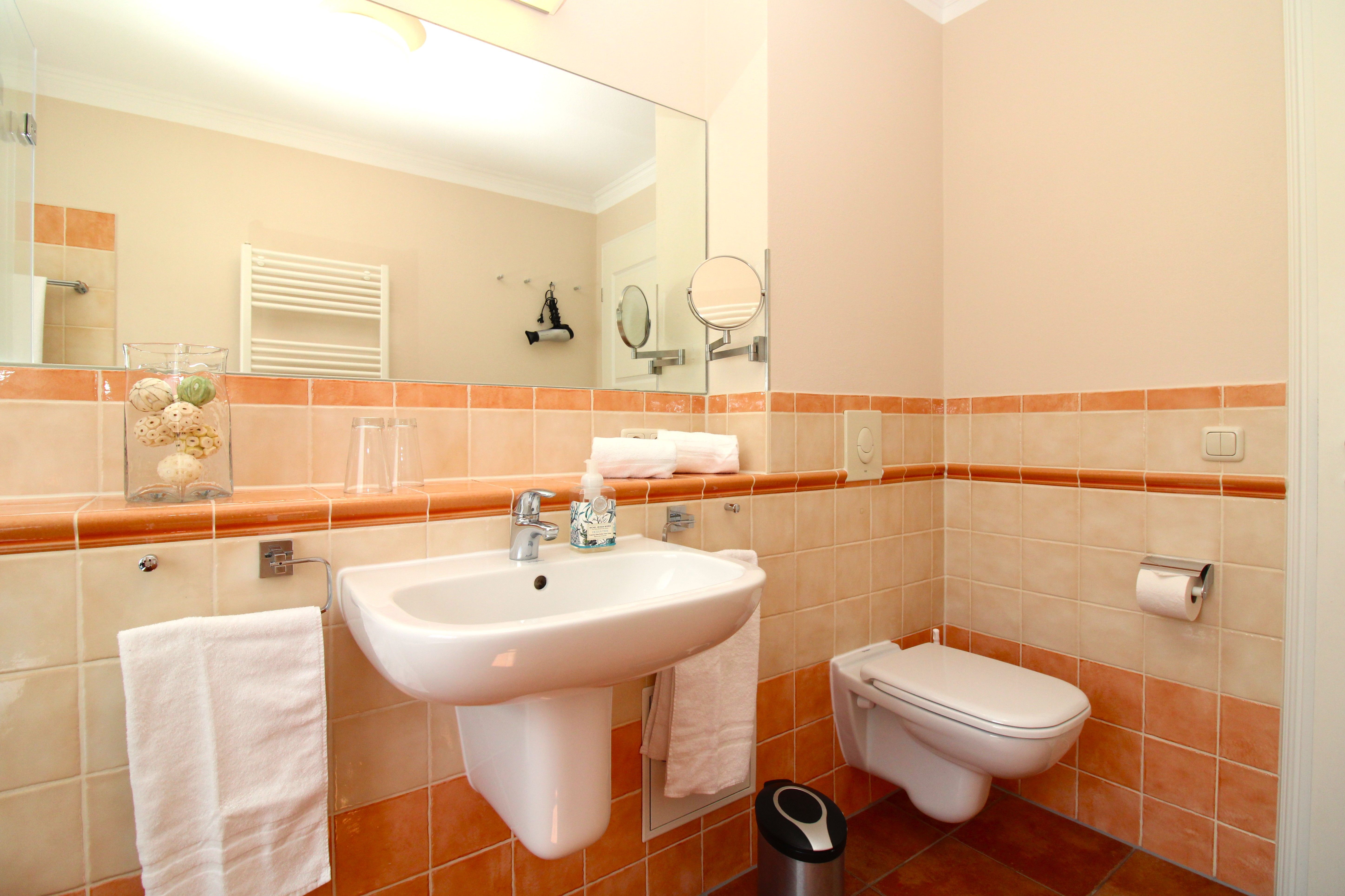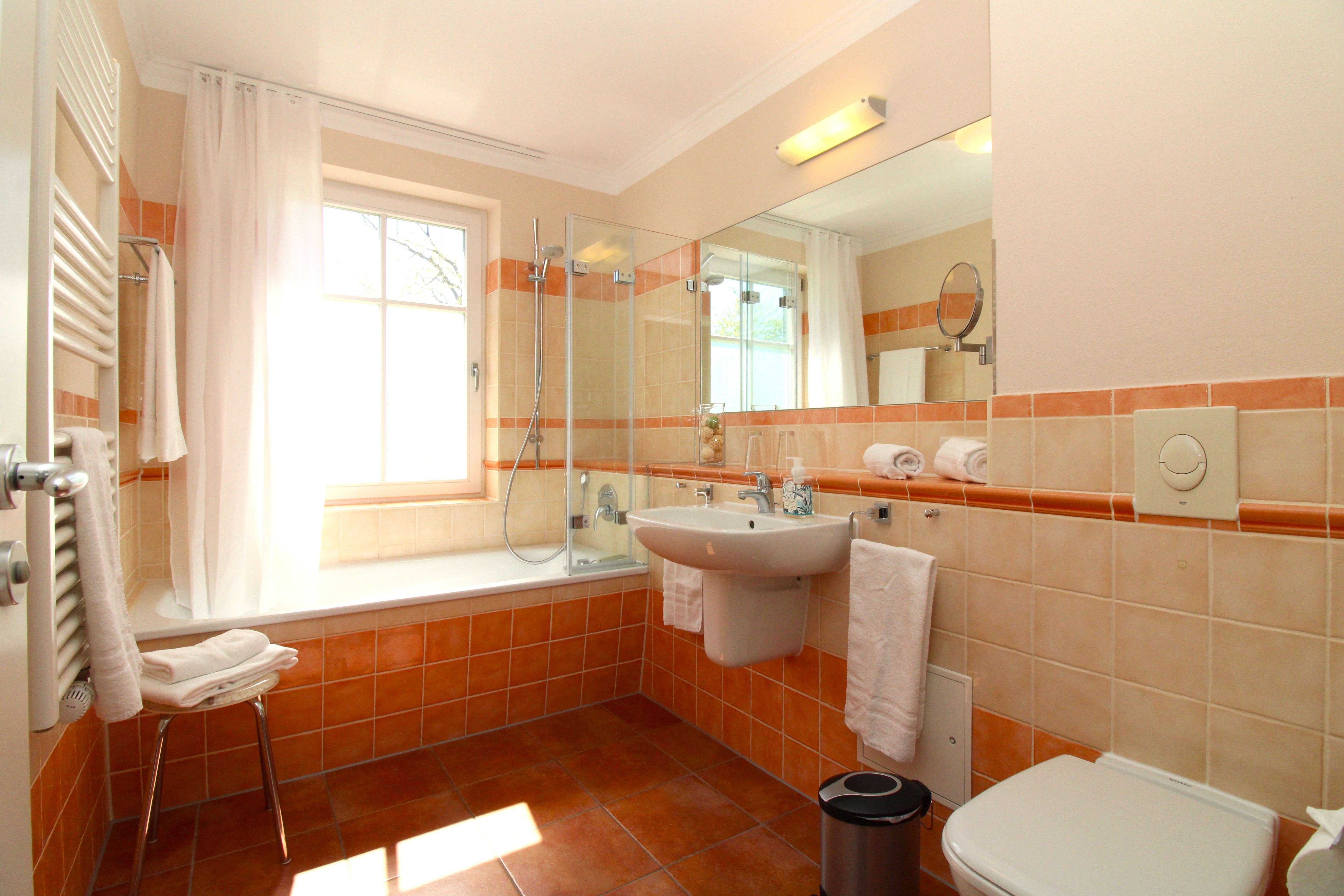 Das große Vollbad ist mit Badewanne, Dusche und WC ausgestattet.