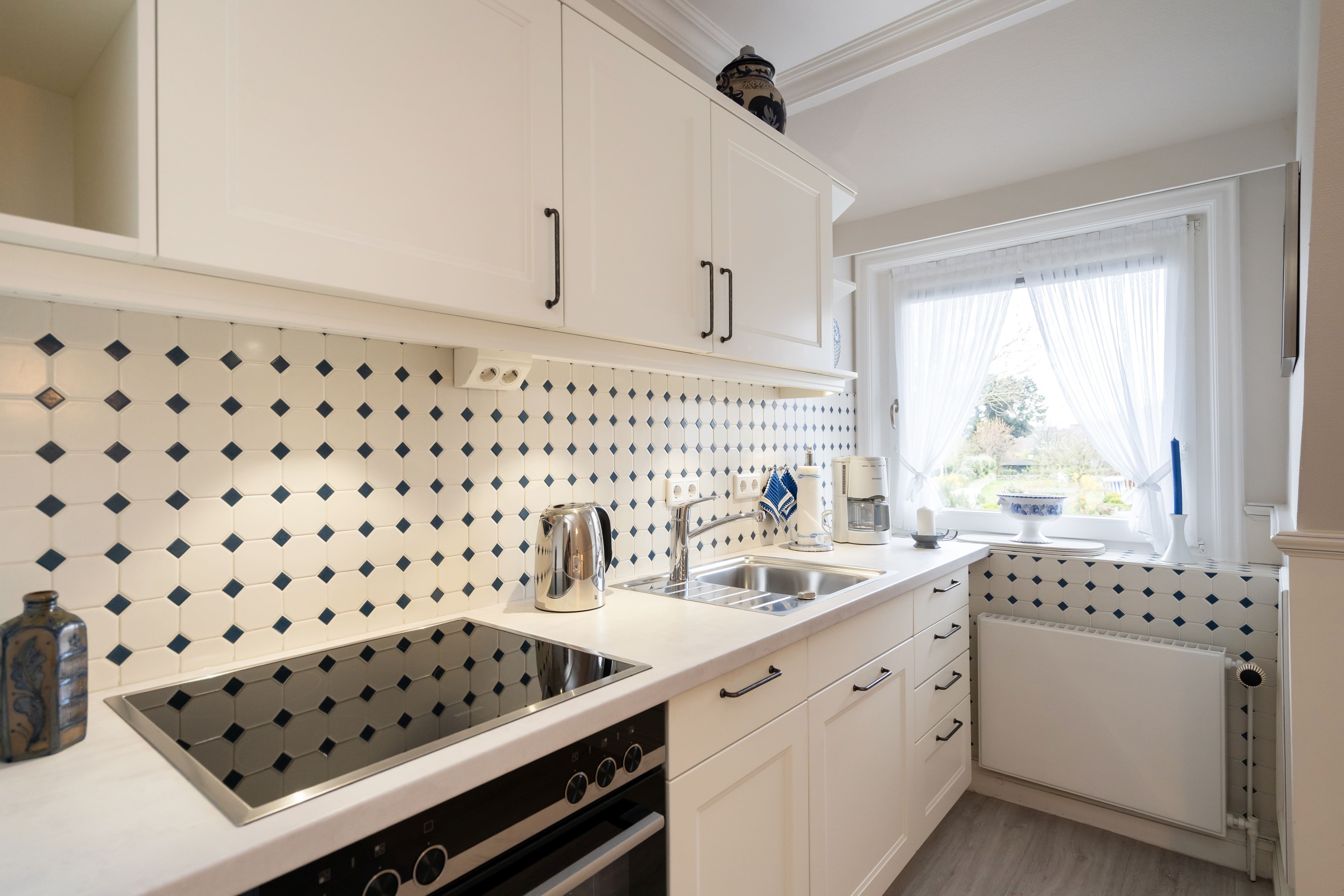 Das gemütliche Appartement bietet Platz für bis zu 4 Personen und verfügt über ein einladendes Wohnzimmer, eine separate Küche mit Essecke, zwei gemütliche Schlafzimmer (eines davon mit einem bequemen Doppelbett eins mit 2 Akkoven), ein Badezimmer mit Dusche, eine sonnige Terrasse und Garten zum Entspannen und einen Parkplatz für Ihr Auto.