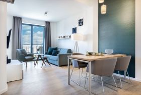 Das 49 m² große barrierearme 2-Zimmer Apartment ist für bis zu 4 Personen geeignet. Das moderne Apartment mit Balkon und direktem Blick auf den Hafen verfügt über kostenfreies WLAN.