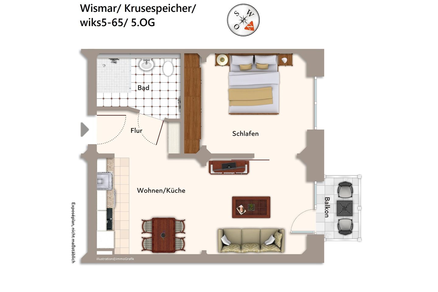 Das Nichtraucher-Apartment in West-Lage befindet sich im 5. Obergeschoss des denkmalgeschützten Krusespeichers. Der Alte Hafen von Wismar, einer der attraktivsten Orte der weltoffenen Hansestadt, liegt euch zu Füßen. Von hier aus lässt sich die Stadt und das wunderschöne Umland ideal erkunden. Der Alte Hafen ist übrigens überaus beliebter Veranstaltungsort für Events und Feste und überdies Original-Drehort für SOKO Wismar, die bekannte ZDF-Serie!