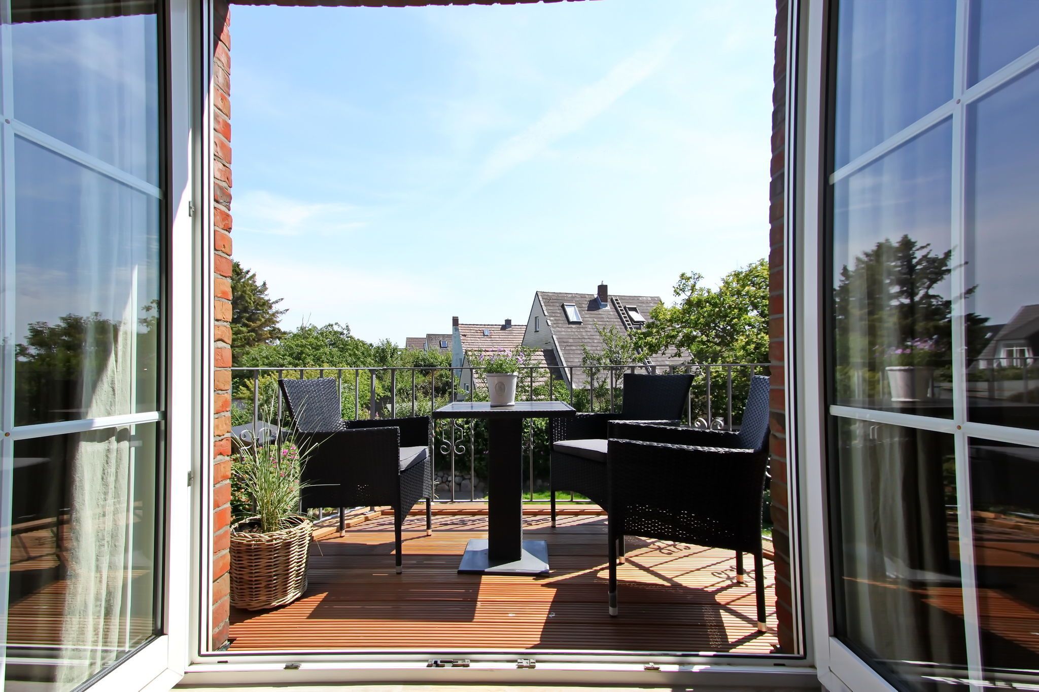 Der meist windabgewandte Ostbalkon mit Morgensonne und schönem Blick in den Garten lädt, wie auch der Südbalkon, zum Essen im Freien ein.