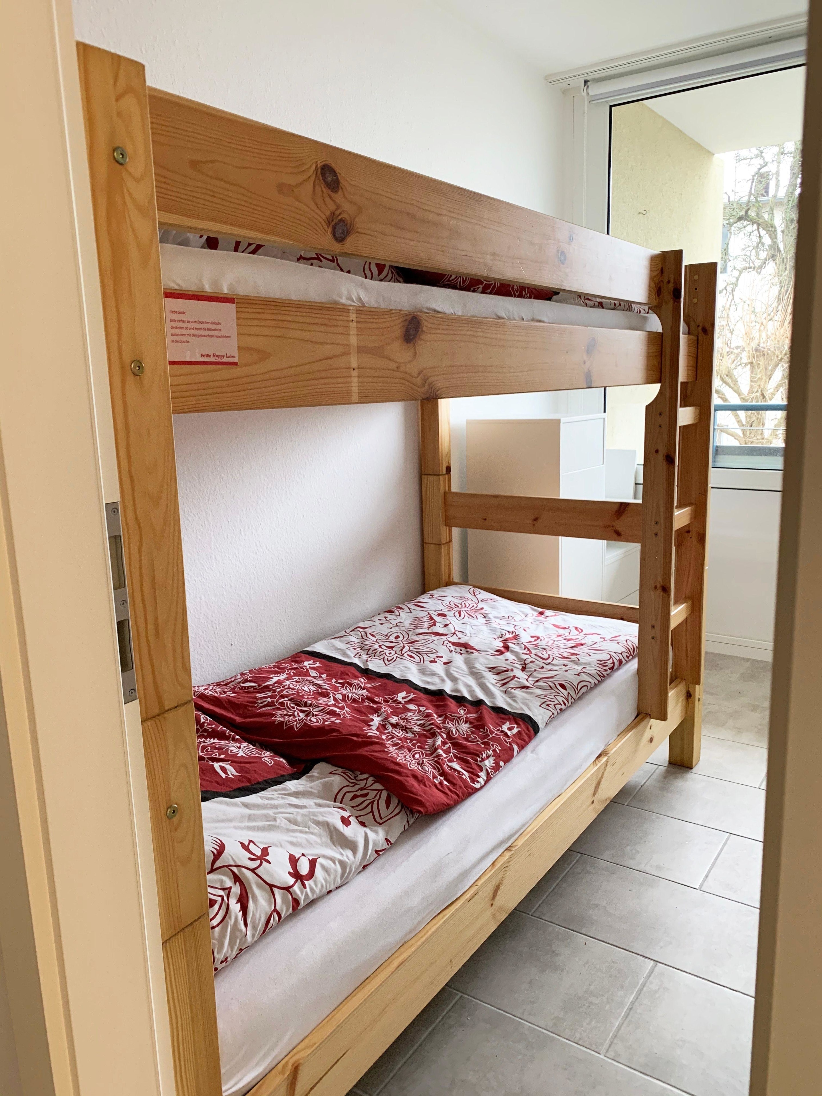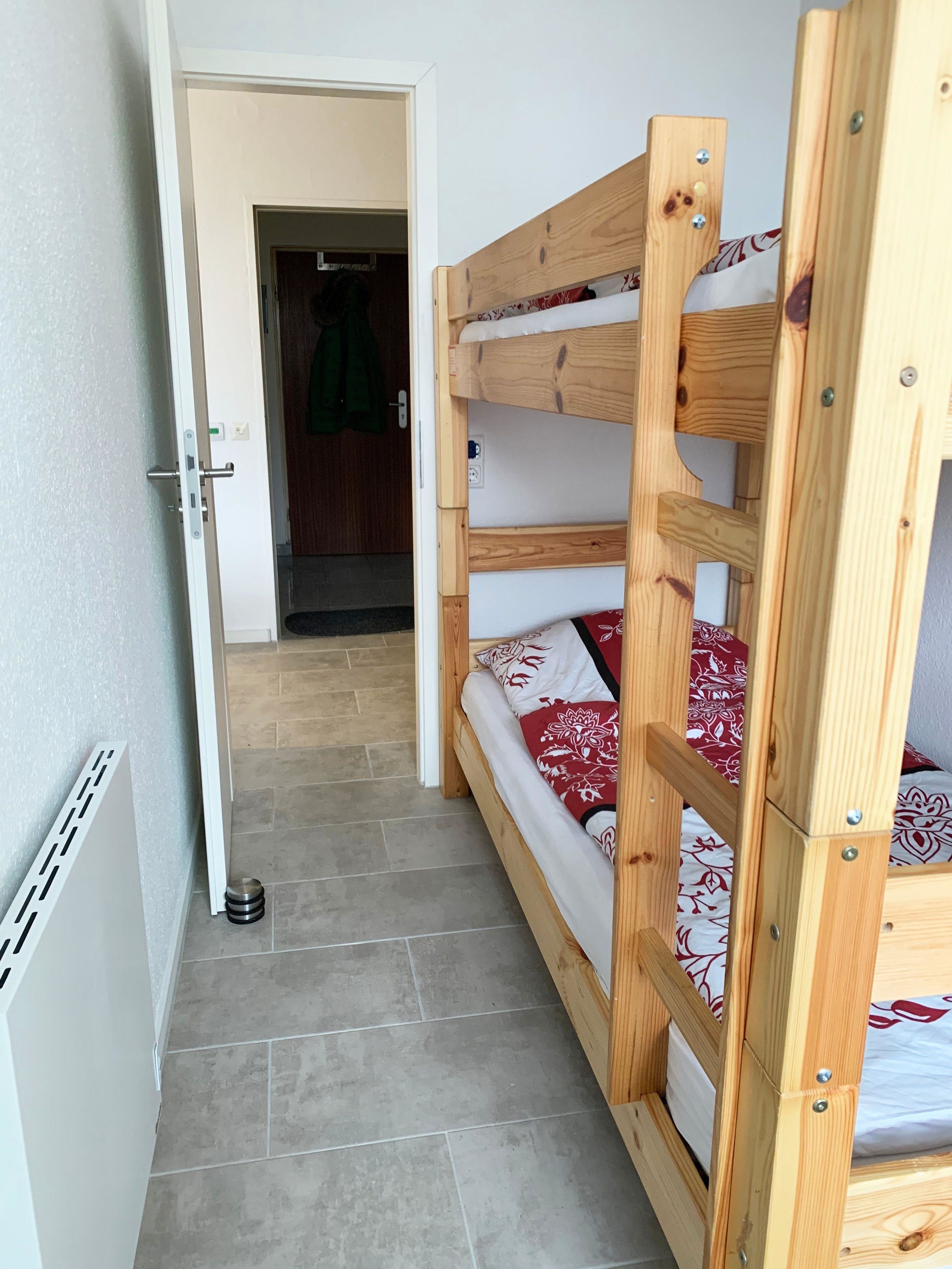 Mit Betreten des Appartements können Sie vom ersten Moment an den Alltag hinter sich lassen. Vorbei am Eingang und dem angrenzendem Duschbad führt Sie der Weg in den Wohn- und Schlafbereich. Hier erwartet Sie ein großes modernes Schlafsofa, das im „Bettumdrehen” zum gemütlichem Boxspringbett wird mit großem Flatscreen TV. Im separatem Zimmer befindet sich ein Etagenbett (90 x 200 cm) in dem nicht nur die Kleinen Platz zum Schlafen finden sowie ein 2ter Flatscreen-TV. Die separate Küche ist mit modernster Technik ausgestattet: Induktions-Kochfeld, Geschirrspülmaschine, eine Kaffeemaschine, Mikrowelle, Wasserkocher und diverse Kleingeräte sorgen dafür, dass es Ihnen an nichts mangelt.