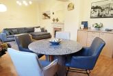 Im Erdgeschoss steht Ihnen ein großzügiges Wohnzimmer mit einem großem Esstisch, einem Schrankbett 160/200 cm mit zwei einzelnen Matratzen, eine gemütlichen Sitzecke, ein DVD-Player (BluRay) und ein Flatscreen-TV zur Verfügung.