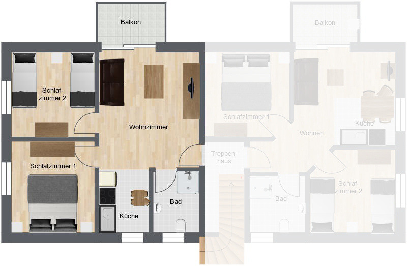 Die Ferienwohnung Takelage ist der perfekte Ausgangspunkt für Ihre Fehmarn-Reise. Sie bietet auf 45 qm Platz für bis zu 4 Gäste. Die Wohnung teilt sich in 2 Schlafzimmer (ein Schlafzimmer mit Doppelbett und ein Schlafzimmer mit zwei Einzelbetten) und einen großzügigen Wohnbereich mit offener Küche auf. Die Wohnung ist mit einem Smart-TV ausgestattet. Das Duschbad ist renoviert und verfügt über ein Fenster. Auf dem sonnigen Balkon lässt es sich herrlich frühstücken, ein Buch lesen oder den Inseltag ausklingen lassen. Parkplätze, ein großer Gemeinschaftsgarten mit Liegewiese und Kinderspielgeräte sind direkt auf dem Grundstück. Im Haus befinden sich insgesamt 4 Wohneinheiten.
