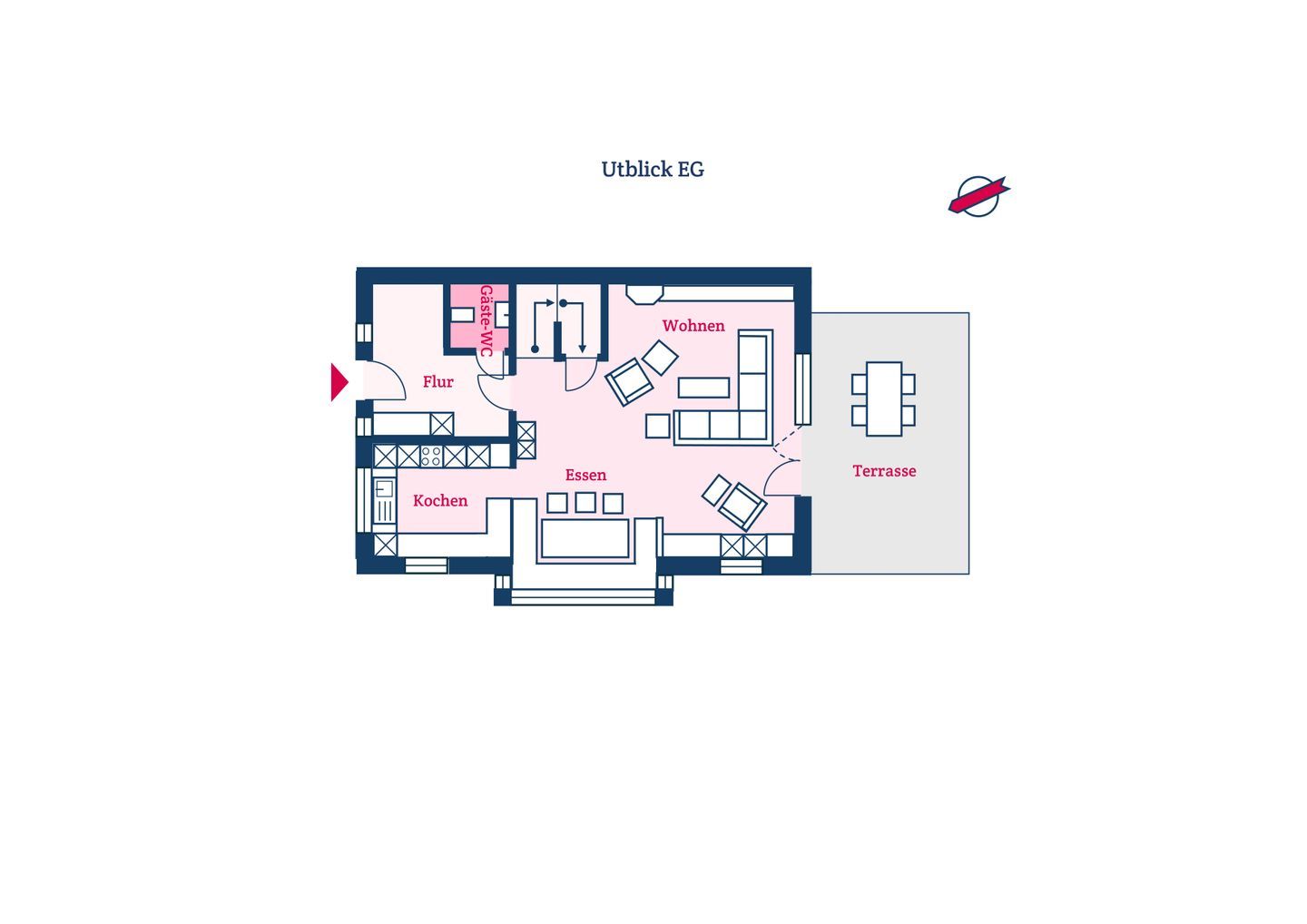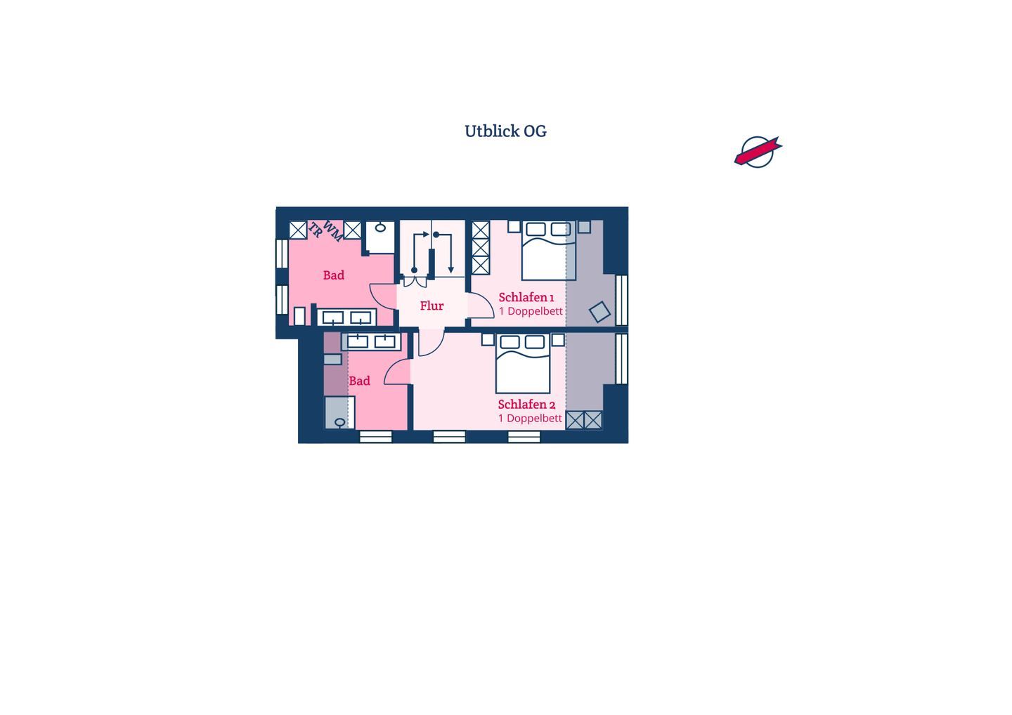 Die Doppelhaushälfte Utblick verfügt über 3 Schlafzimmer, 2 Bäder und 1 Gäste-WC und bietet somit komfortabel Platz für bis zu 6 Personen zuzüglich einer Kleinkinderaufbettung.