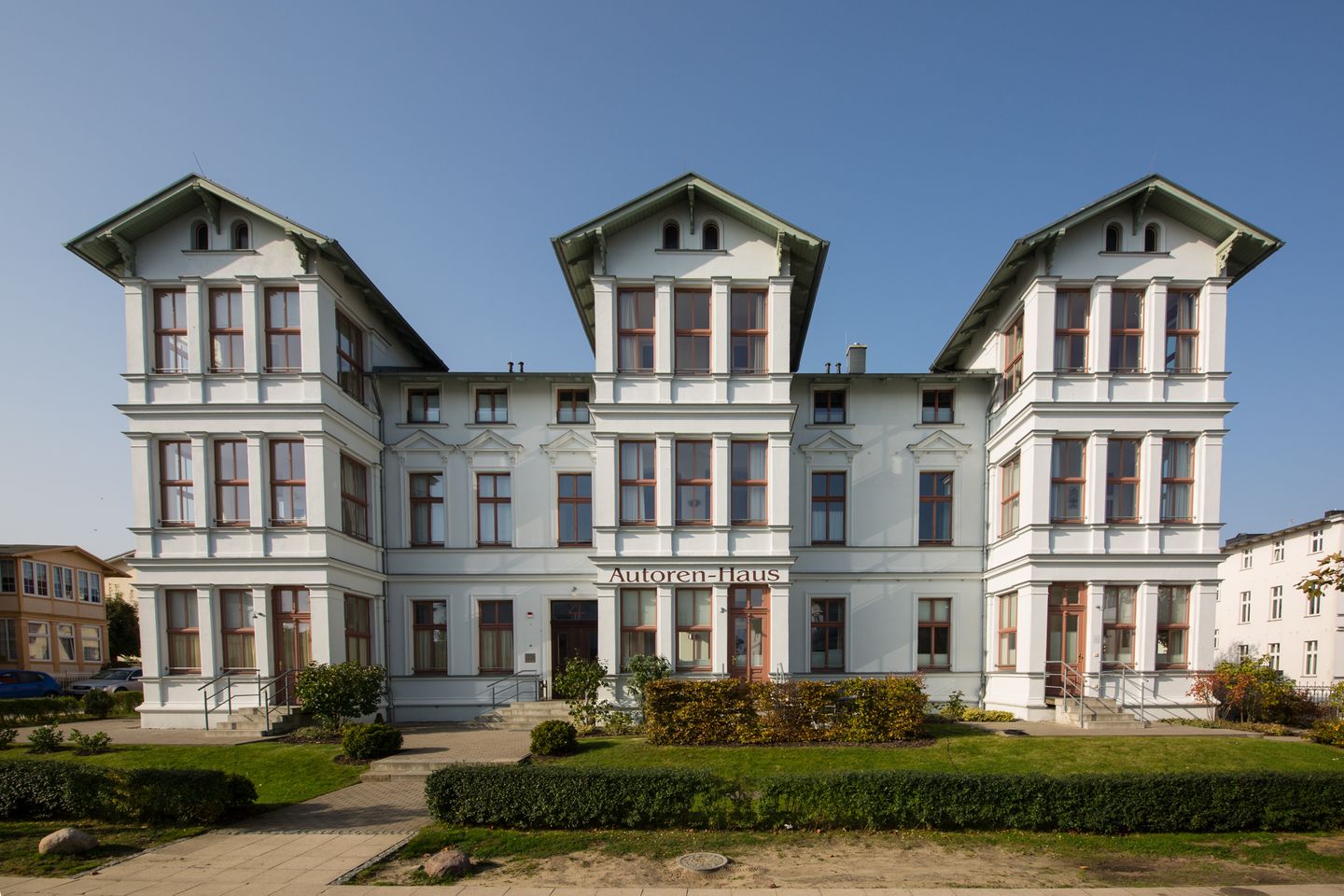 Ehemals unter dem Namen Wilhemshöh war das Autorenhaus schon zur Jahrhundertwende eines der ersten Gästehäuser am Platze. In einer Entfernung von nur ca. 50 m zum weißen Sandstrand und nur ca. 250 m zur historischen Seebrücke - dem Wahrzeichen von Ahlbeck - liegt das Autorenhaus in sehr ruhiger aber zentraler Lage.