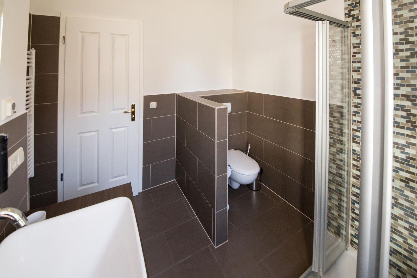 Historische Villa - moderne Ferienwohnung! Eine gekonnt designte Wohnung erwartet Sie im Erdgeschoss des Hauses und bietet Platz für 2 Erwachsene und 1 Kleinkind (bis 3 Jahre) im Reisebett. Der lichtdurchflutetete Wohnbereich mit Kamin und Blick auf die umlaufende Südwestterrasse lädt zum Relaxen ein. Der angrenzende Küchen- und Essbreich ist komplett ausgestattet. Im Schlafzimmer mit Doppelbett ( 1,80m x 2m) finden Sie einen zweiten Flat-TV vor. Ergänzt wird dies durch das Bad mit Dusche und WC. Ein Kinderreisebett kann in dieser Wohnung nur im Wohnbereich aufgestellt werden. Auf Wunsch stellen wir für unsere kleinen Gäste ein Kinderreisebett (ohne zusätzliche Matratze & Bettzeug) und einen Kinderhochstuhl zur Verfügung. Für Ihren Komfort sind die Betten bei der Anreise bezogen und Handtücher liegen bereit.