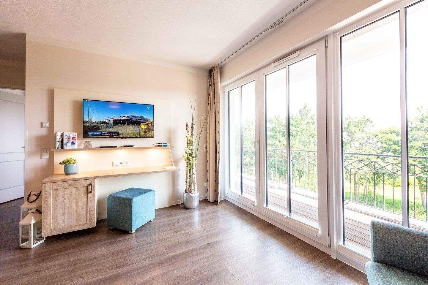 Mit 58 m² gehört die Suite 2-50 zu den größten Zweiraumapartments im Waterkant Aparthotel und ist für bis zu 4 Personen geeignet. Das Apartment befindet sich im zweiten Obergeschoss vom vorgelagerten Ostgebäude und ist bequem mit dem Fahrstuhl erreichbar. Dieser Gebäudebereich hat einen zusätzlichen separaten Eingang.
